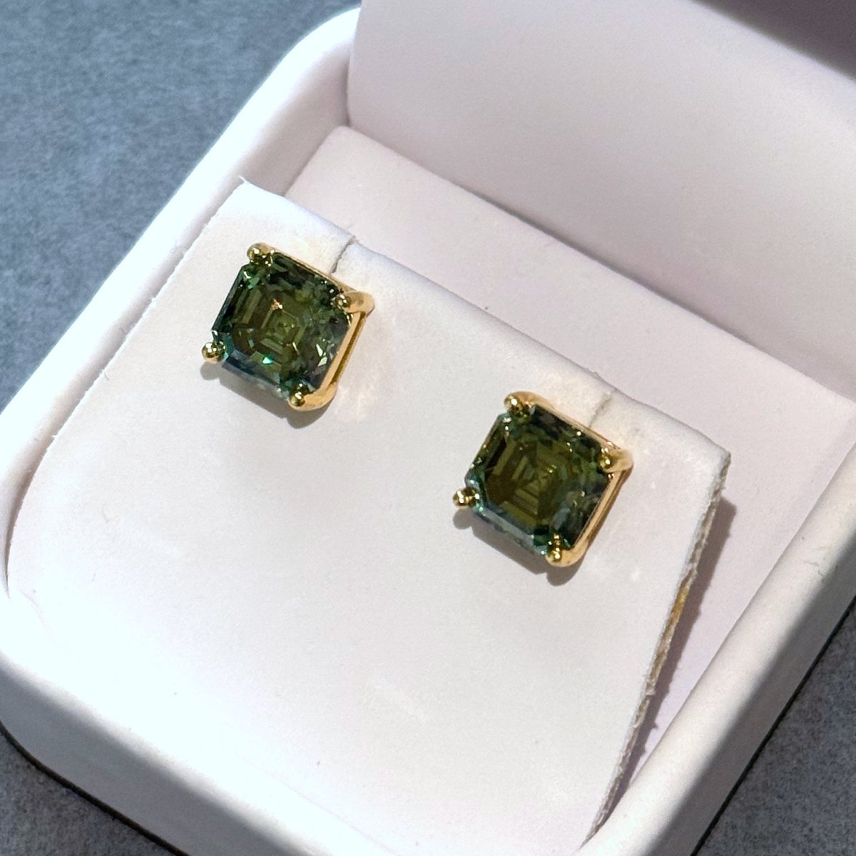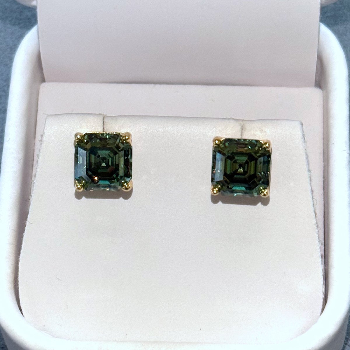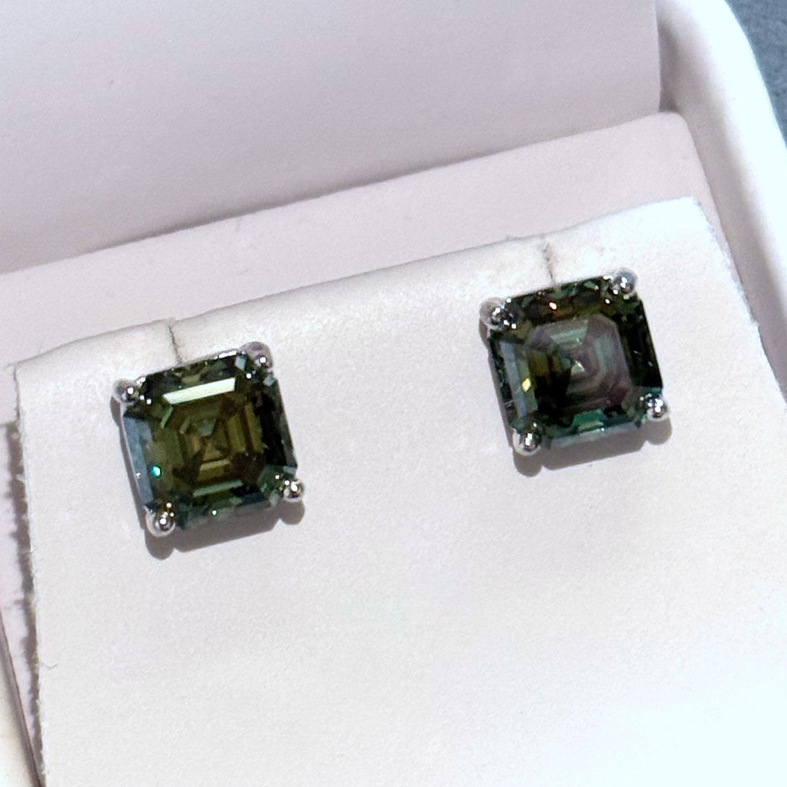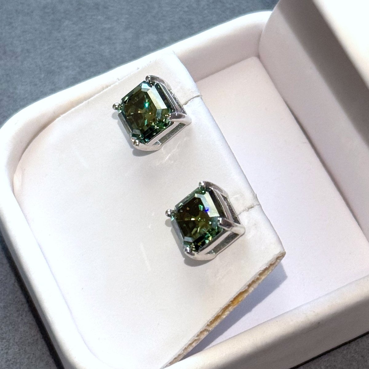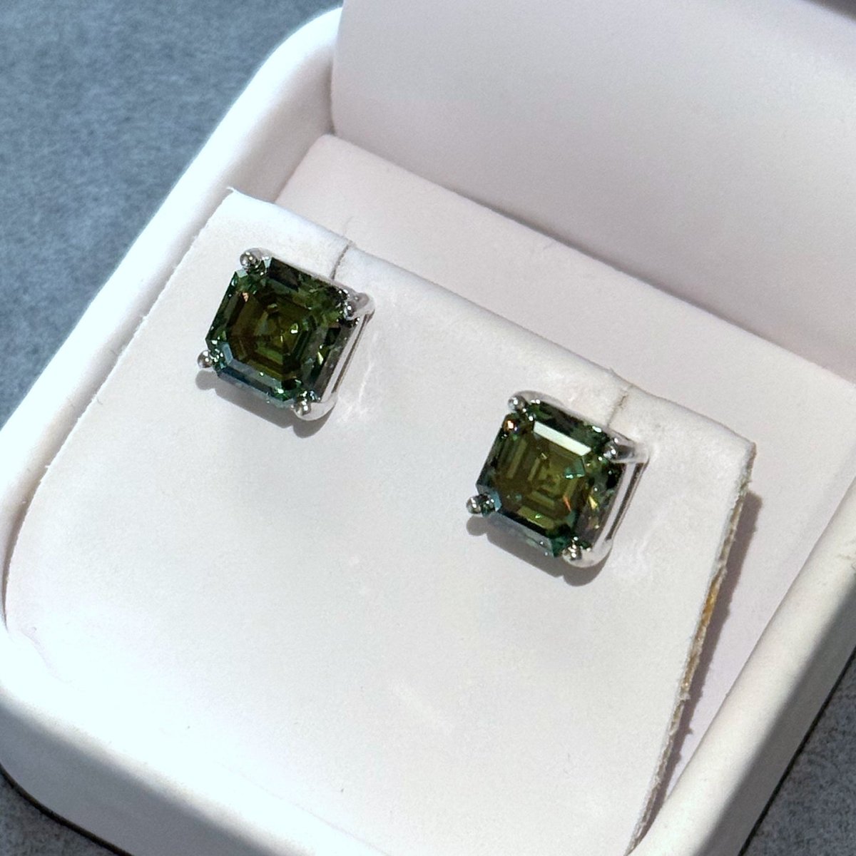 Certified Green Asscher Cut Moissanite Stud Earrings