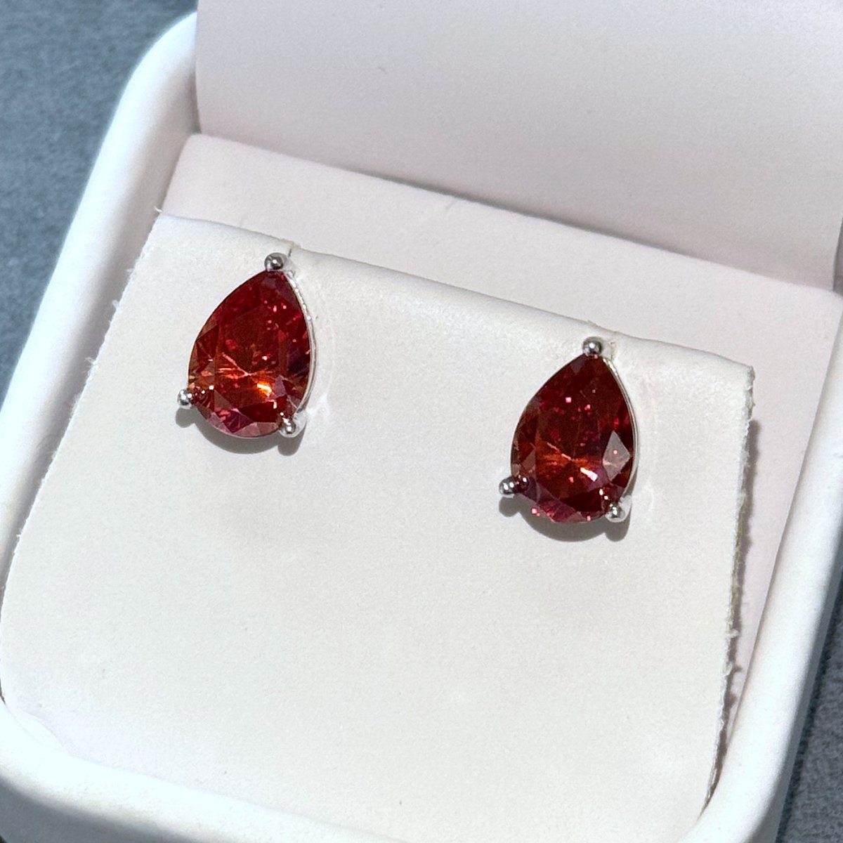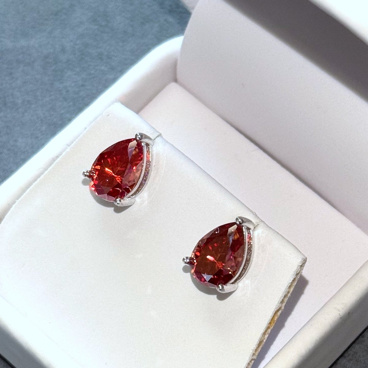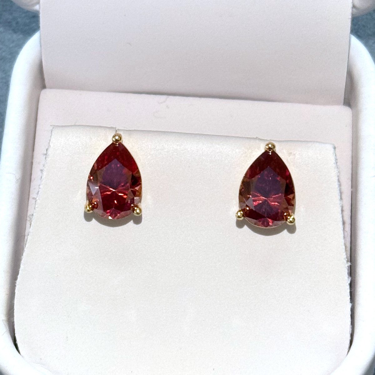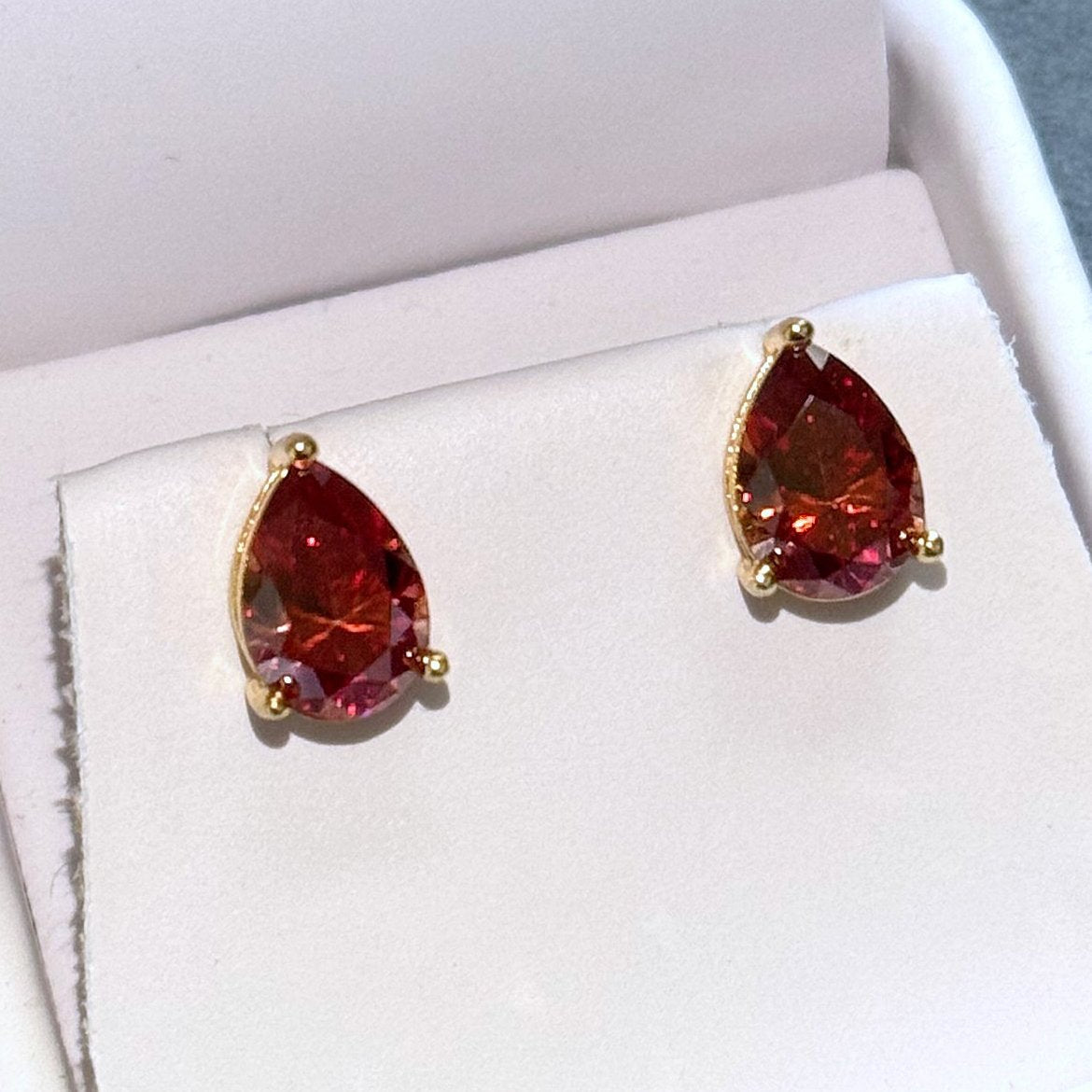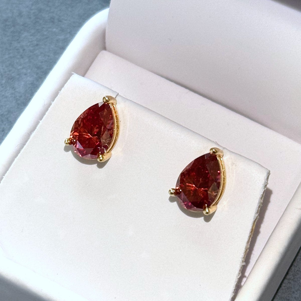 Certified Red Pear Cut Moissanite Stud Earrings