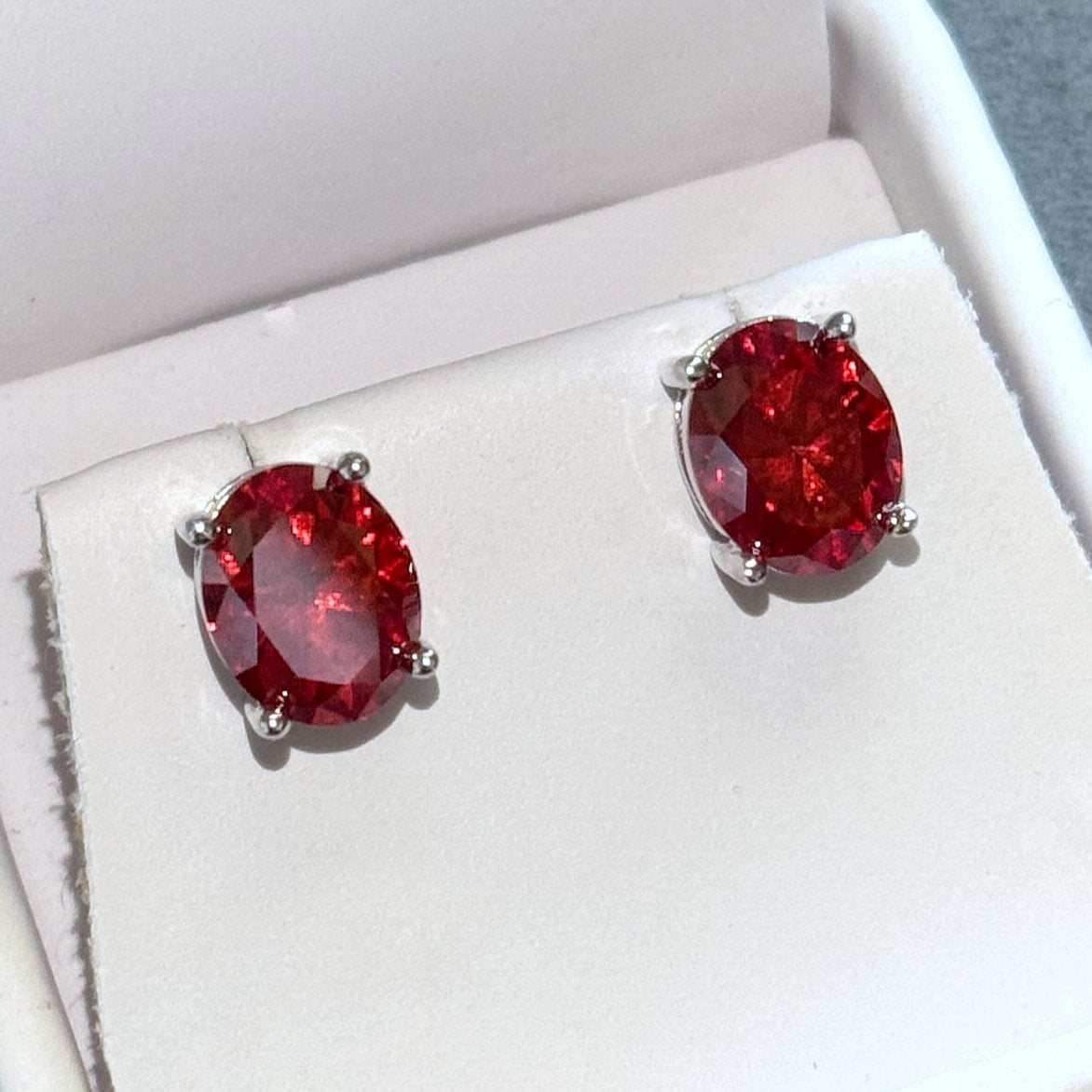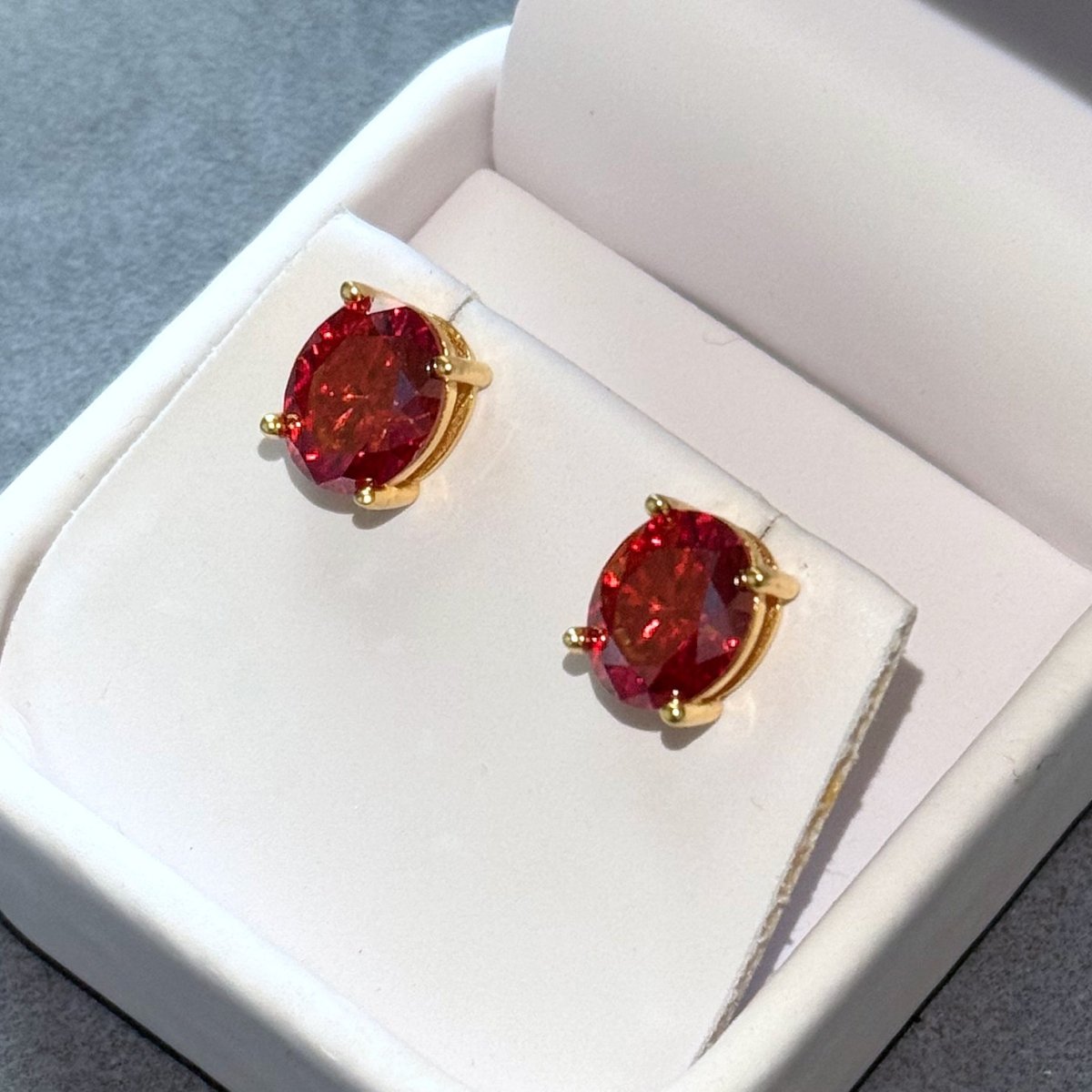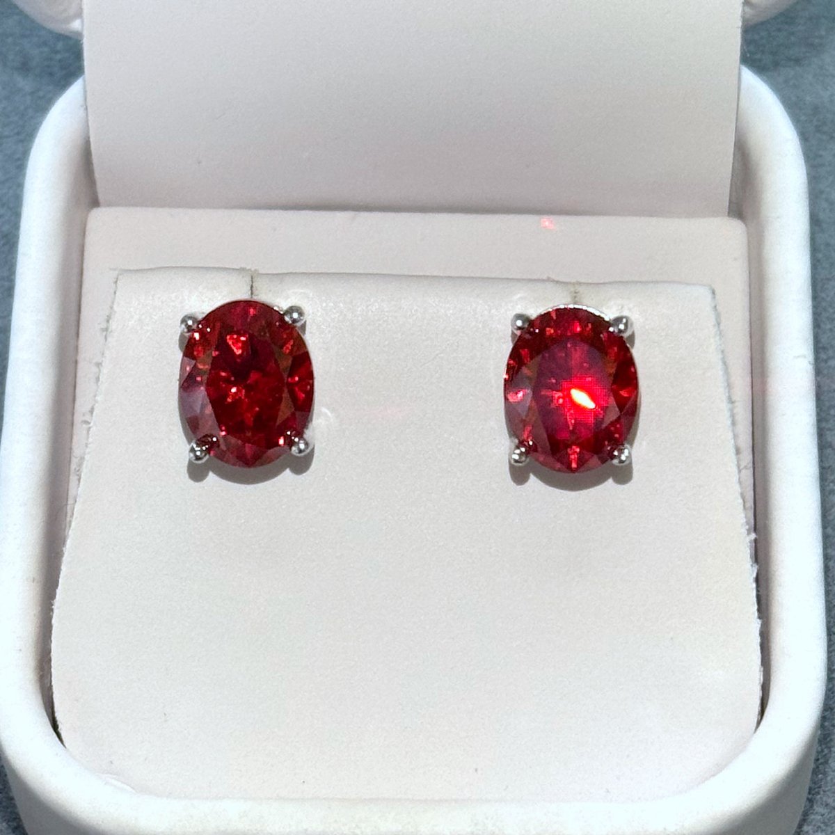Certified Vivid Red Oval Moissanite Stud Earrings