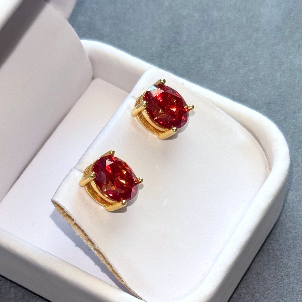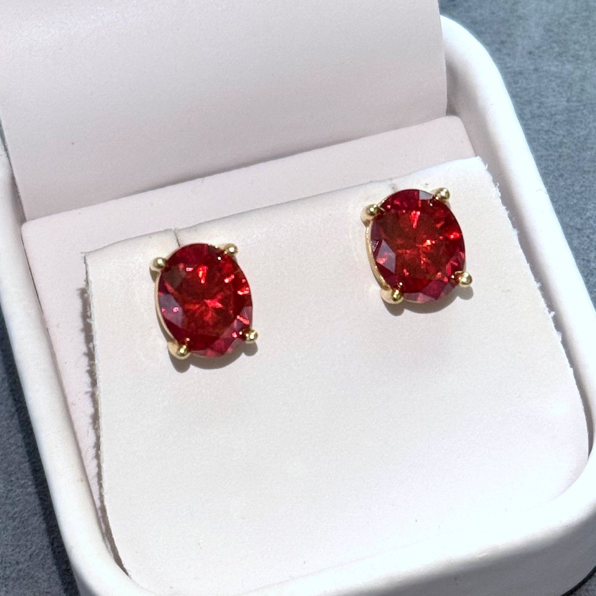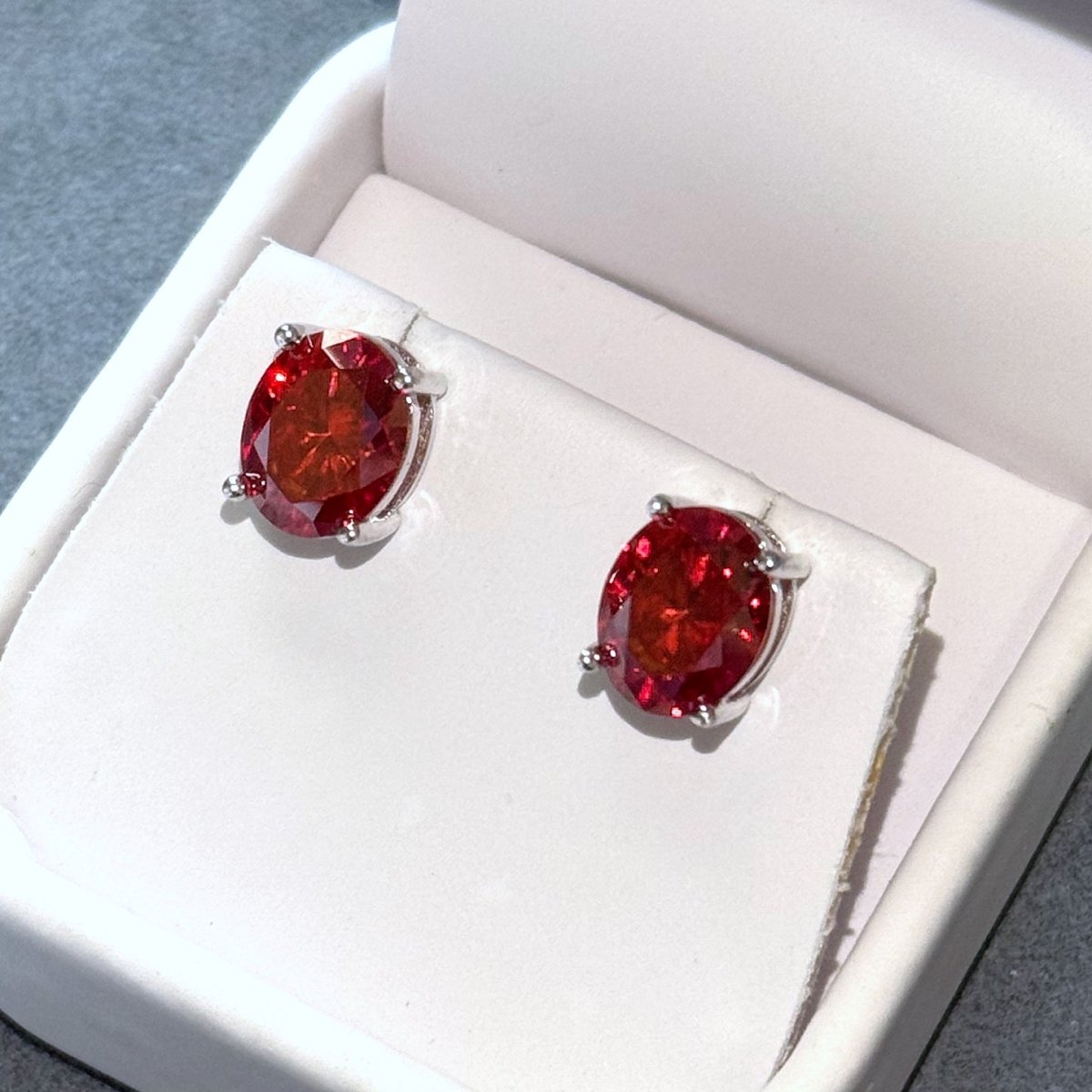 Certified Vivid Red Oval Moissanite Stud Earrings