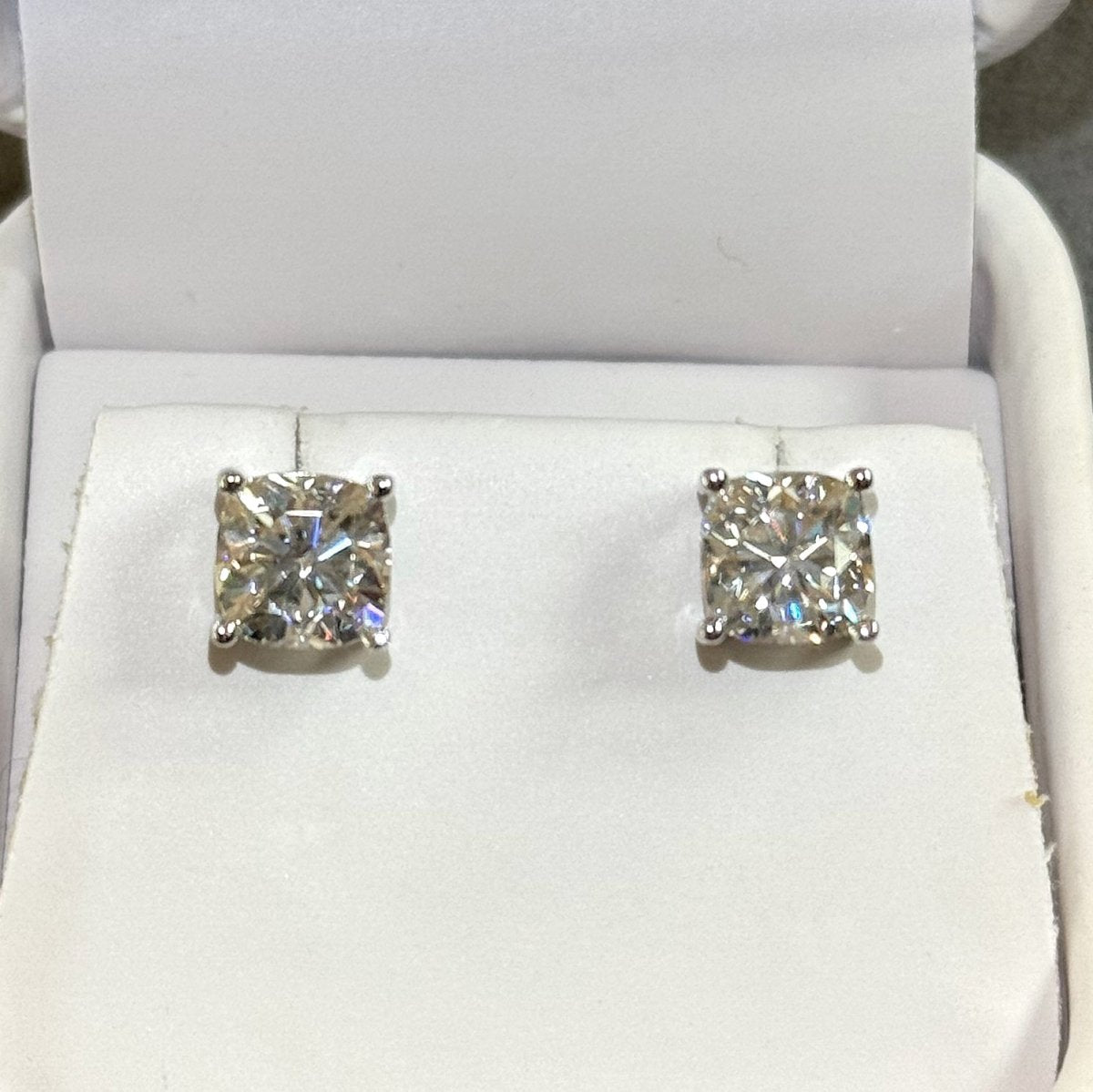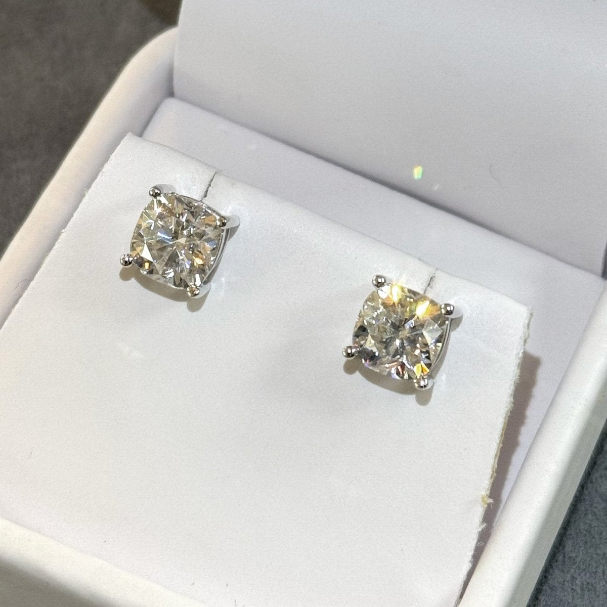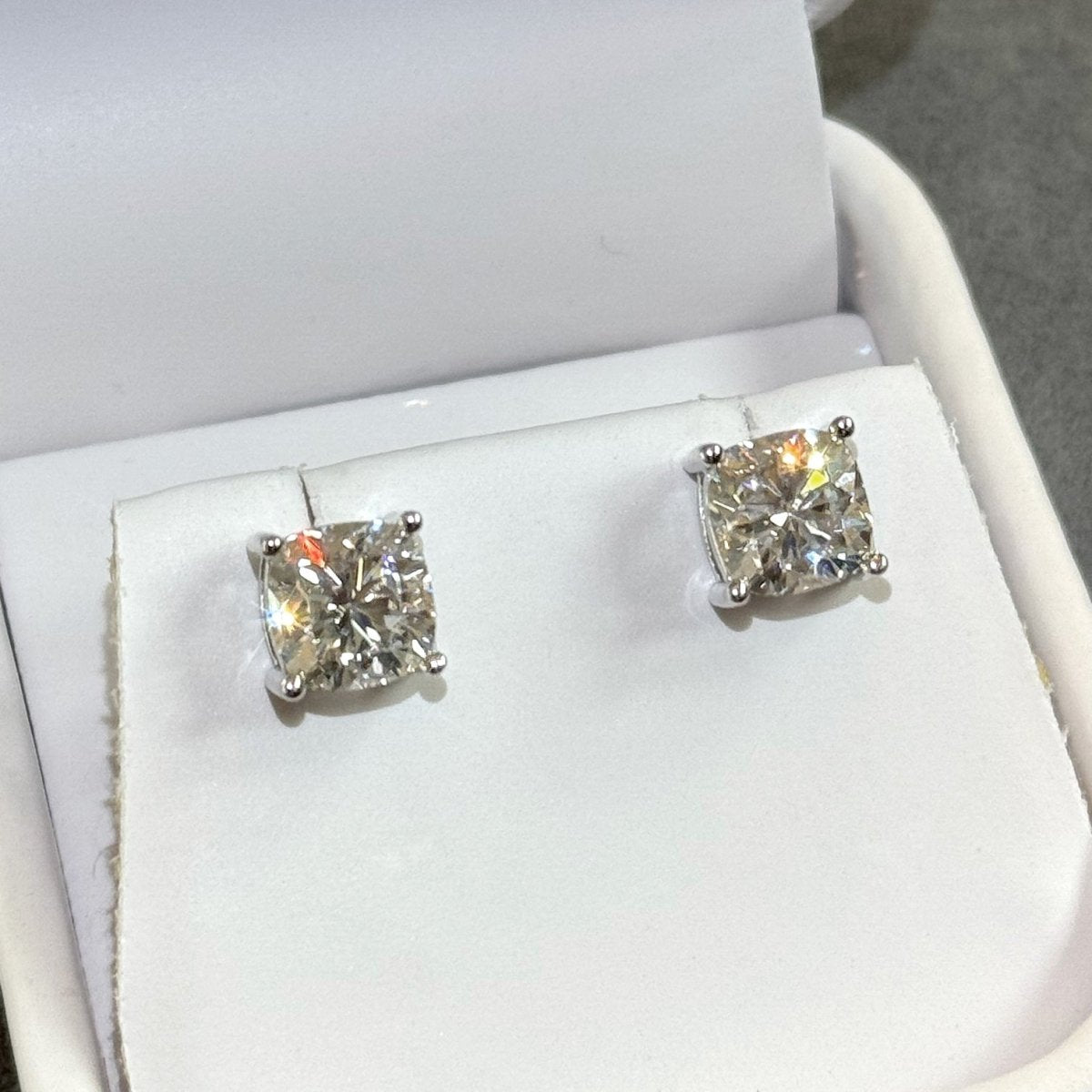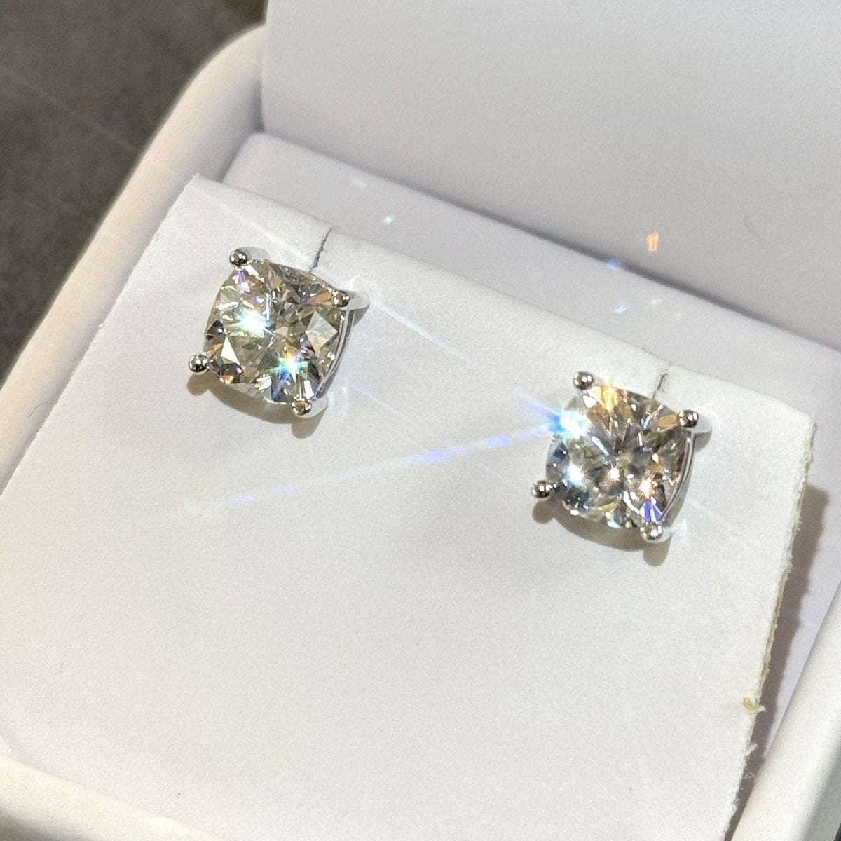 Certified VVS Moissanite Cushion Cut Stud Earrings