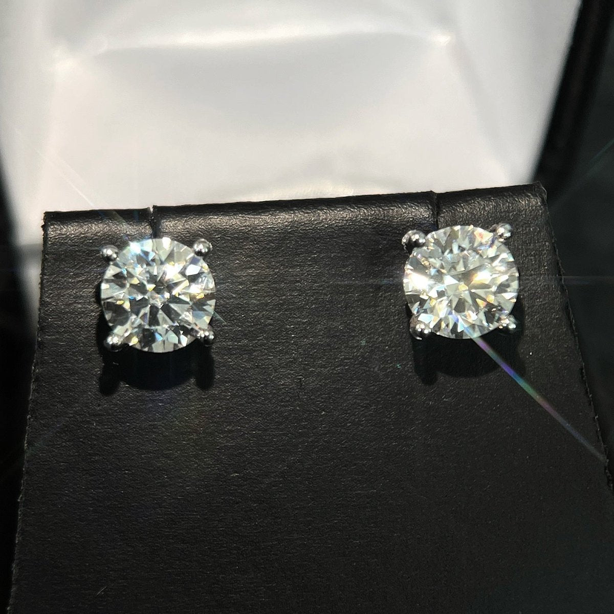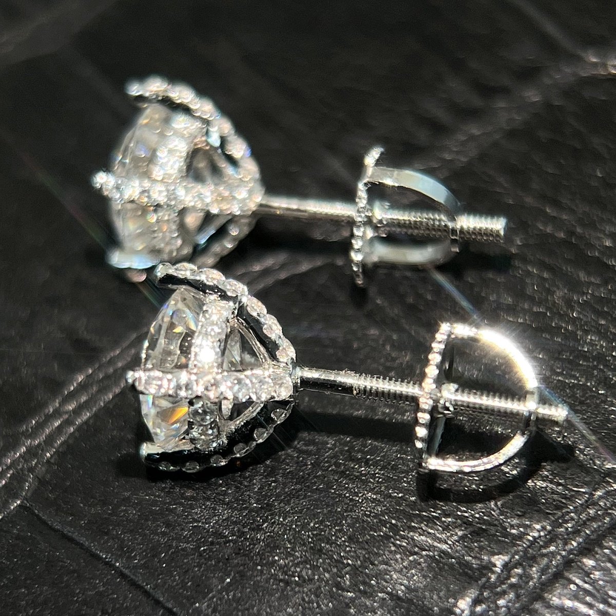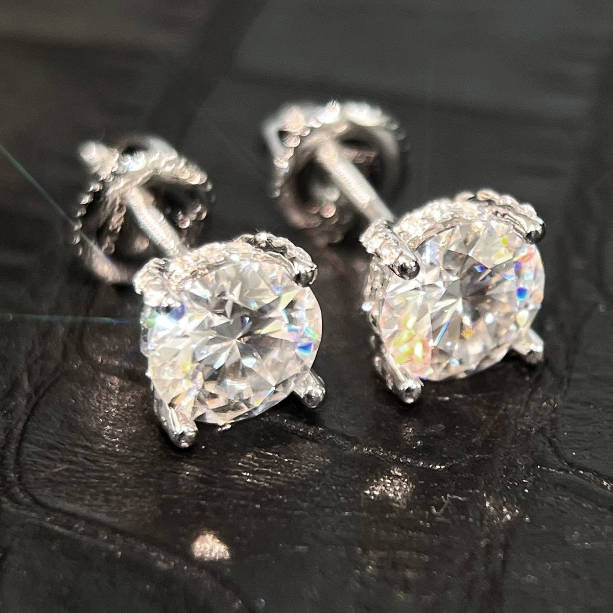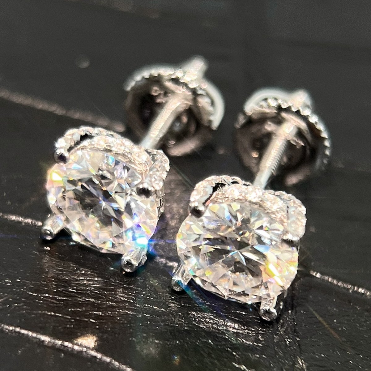 Our Top level VVS1 Moissanite stones have impressive fire and brilliance and hits harder than CZ or any other type of fake diamond. They test positive as real diamonds on most handheld diamond testers. Everyone will think they're expensive diamonds. Each stone is carefully set to a screw-back mounting, exactly how $10,000+ earrings are always made. You get the exact same look and shine. The only decision now is how many carats you want in each ear. Order yours today!