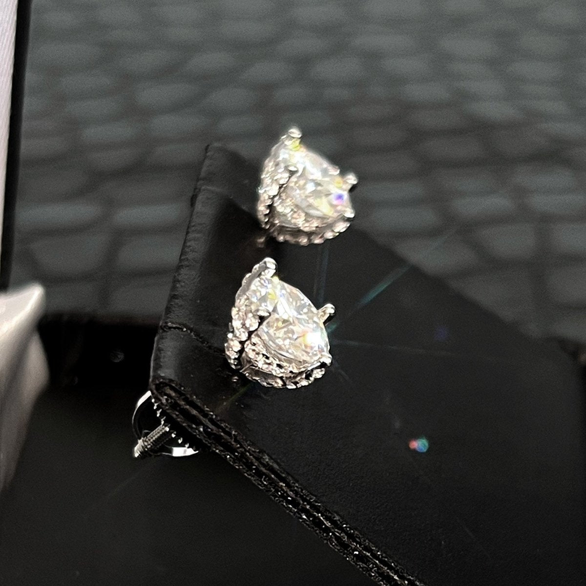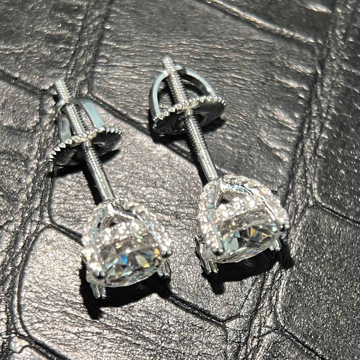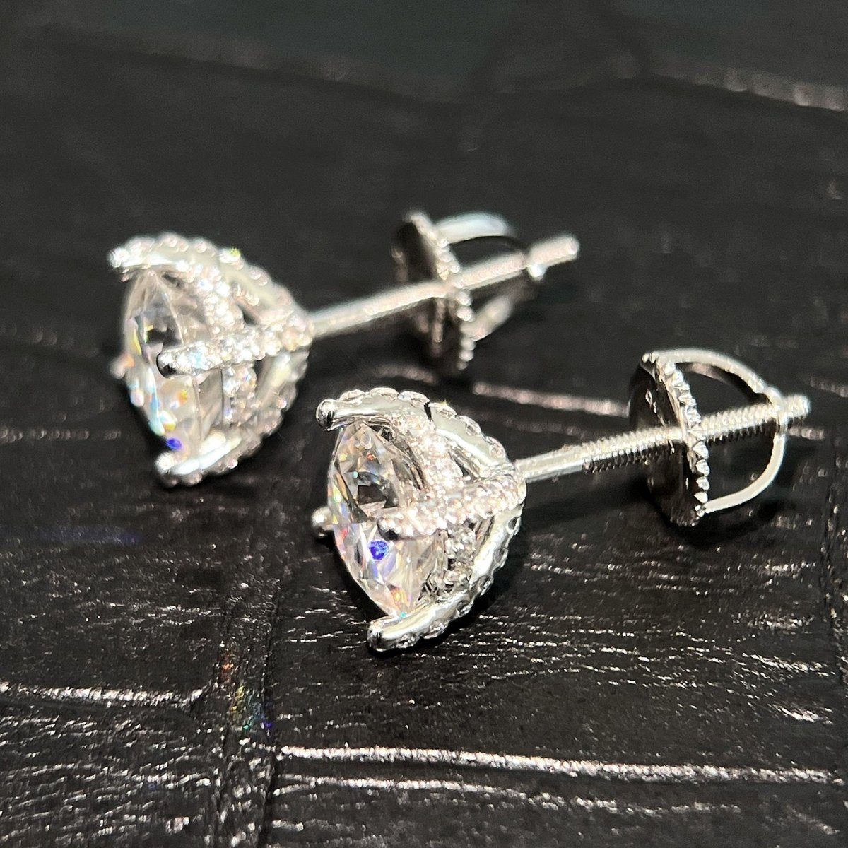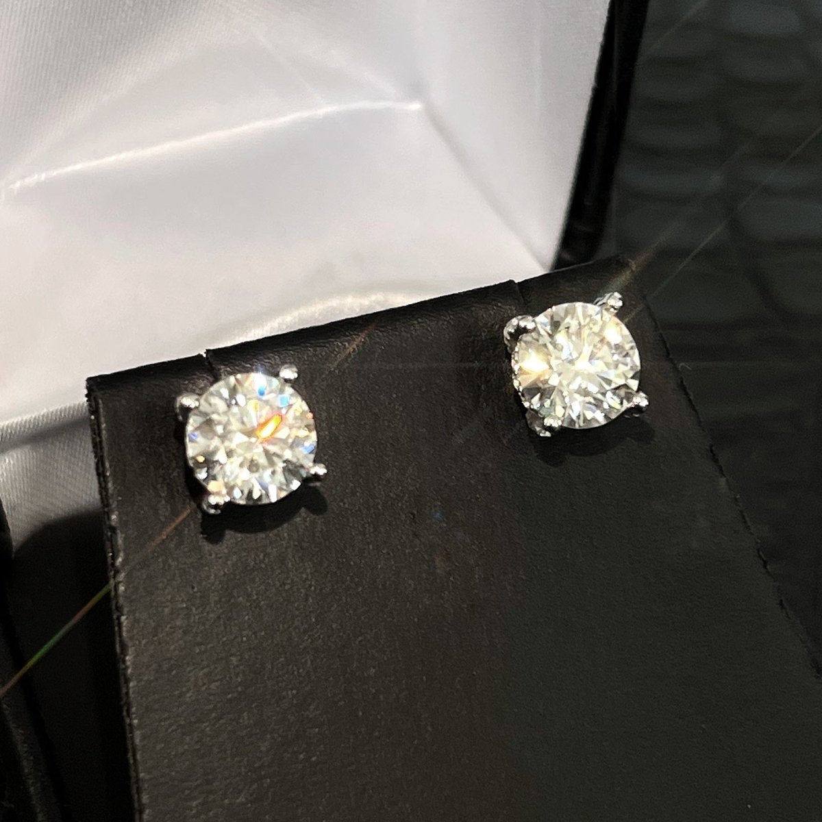 Our Top level VVS1 Moissanite stones have impressive fire and brilliance and hits harder than CZ or any other type of fake diamond. They test positive as real diamonds on most handheld diamond testers. Everyone will think they're expensive diamonds. Each stone is carefully set to a screw-back mounting, exactly how $10,000+ earrings are always made. You get the exact same look and shine. The only decision now is how many carats you want in each ear. Order yours today!