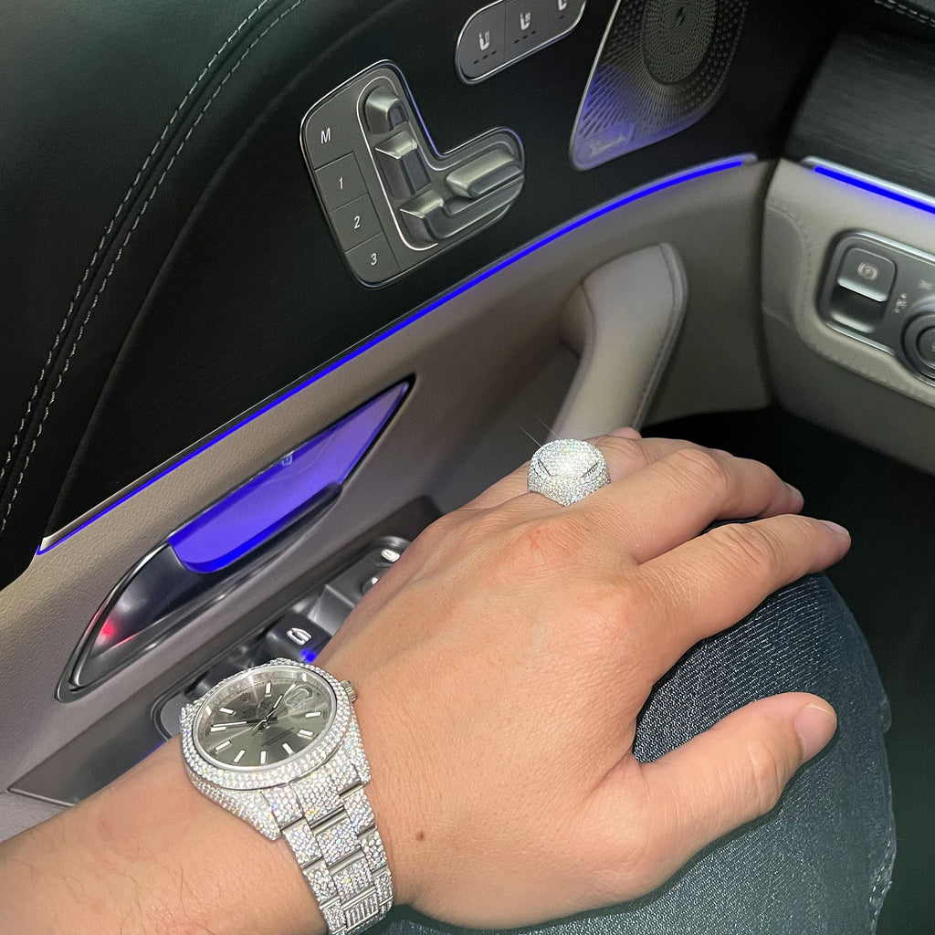 6.30 Carat Moissanite Hex Top Iced Out Ring