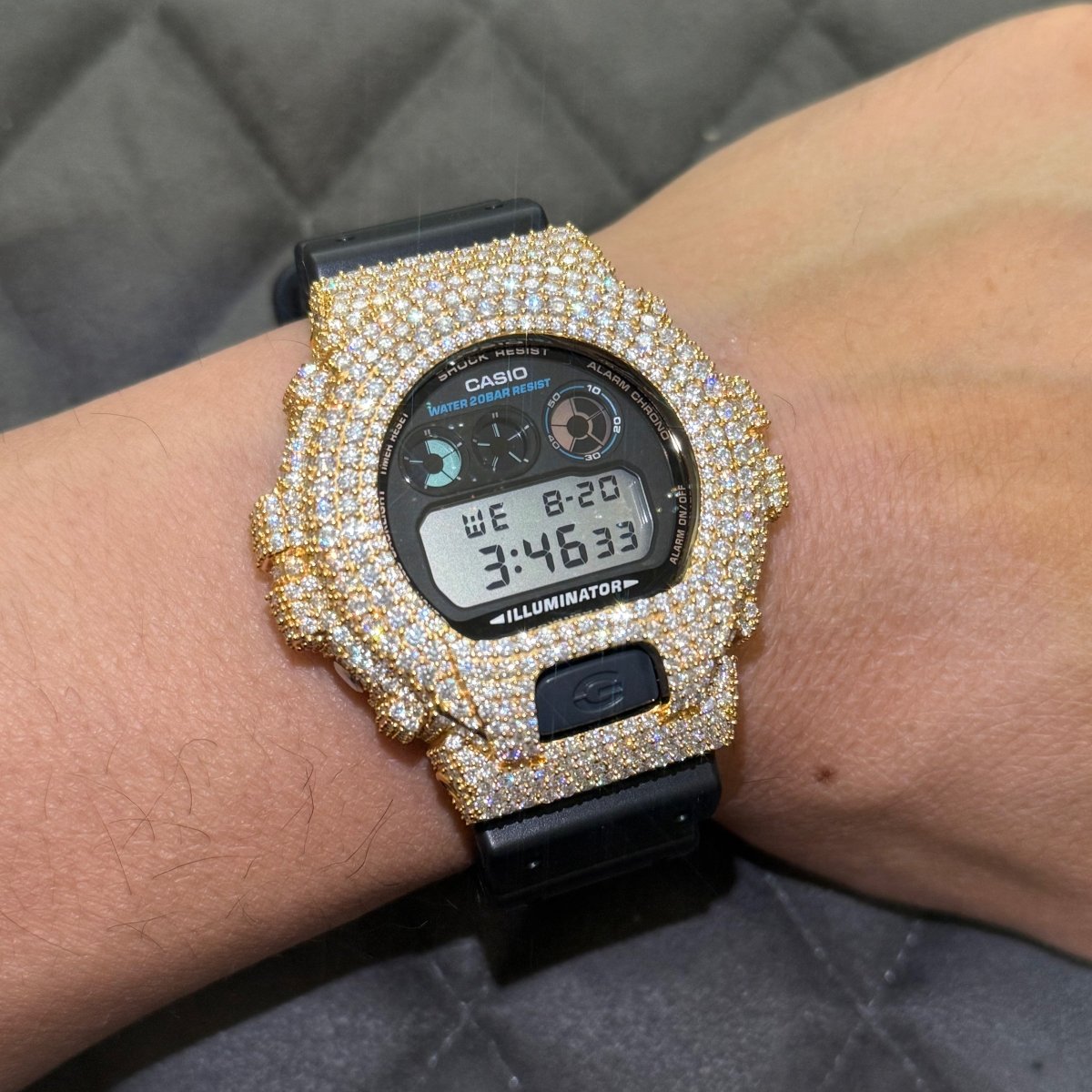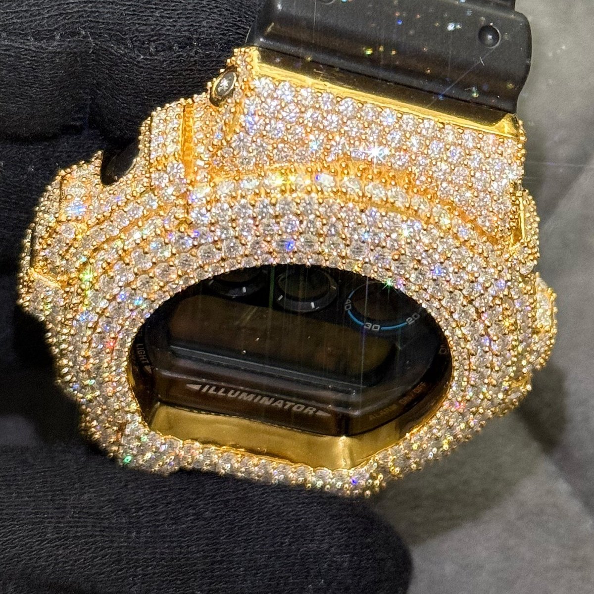 Gold Crushed Out Moissanite G Shock Watch