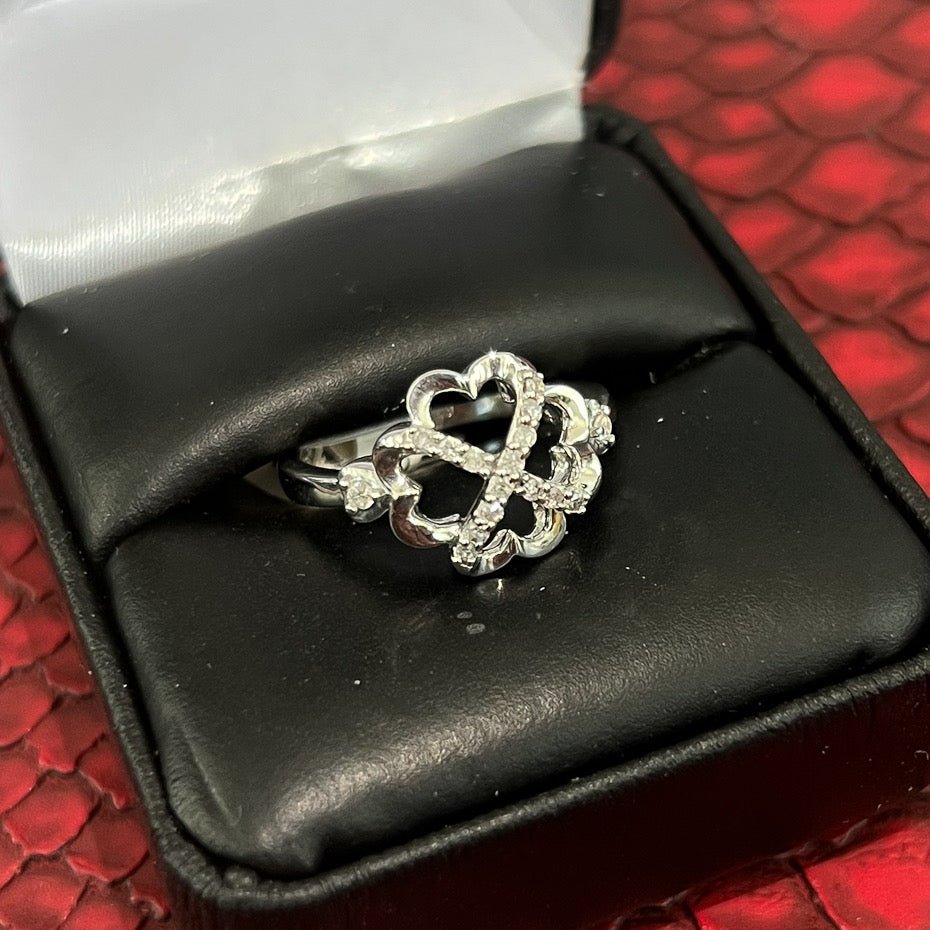 0.15 Carat Genuine Diamond Unique Hearts Ring