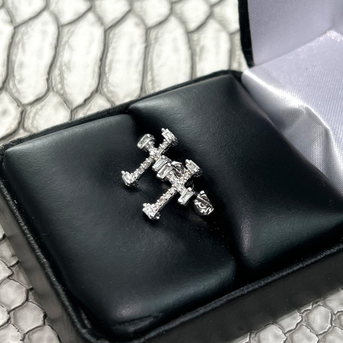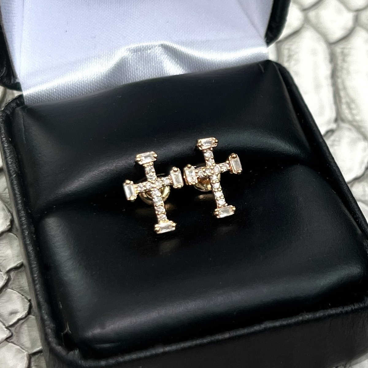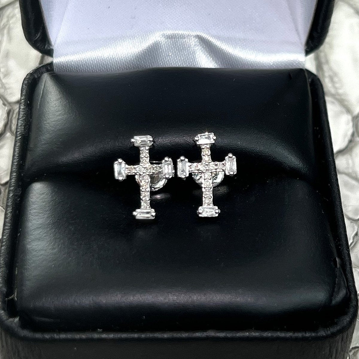0.32 CTW Baguette Tip Diamond Cross Earrings 10K Gold