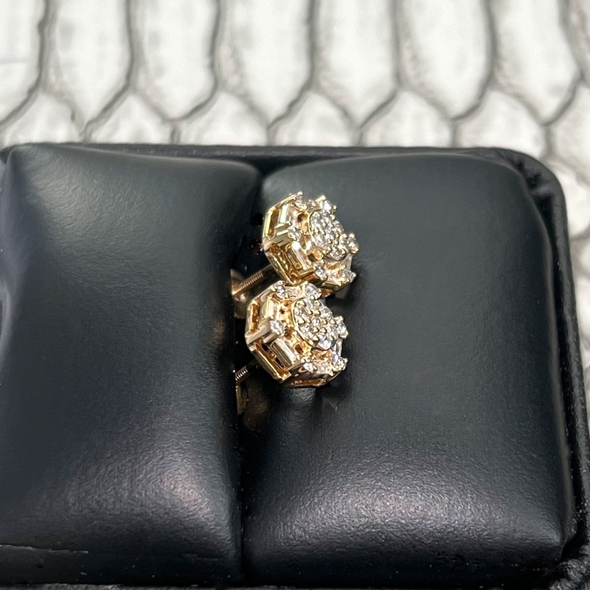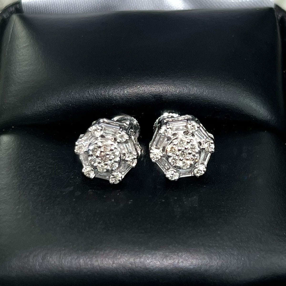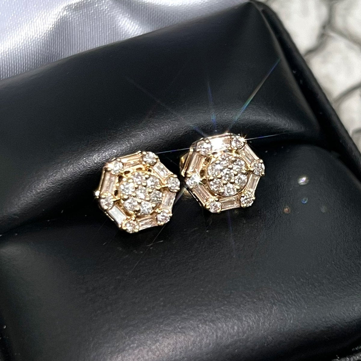 0.43 CTW Real Diamond Baguette Hexagon Earrings