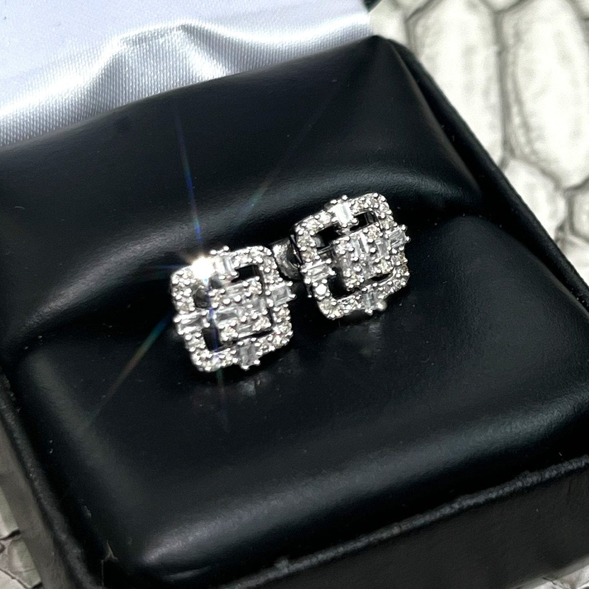 0.45 CTW Diamond Baguette Fancy Square Earrings