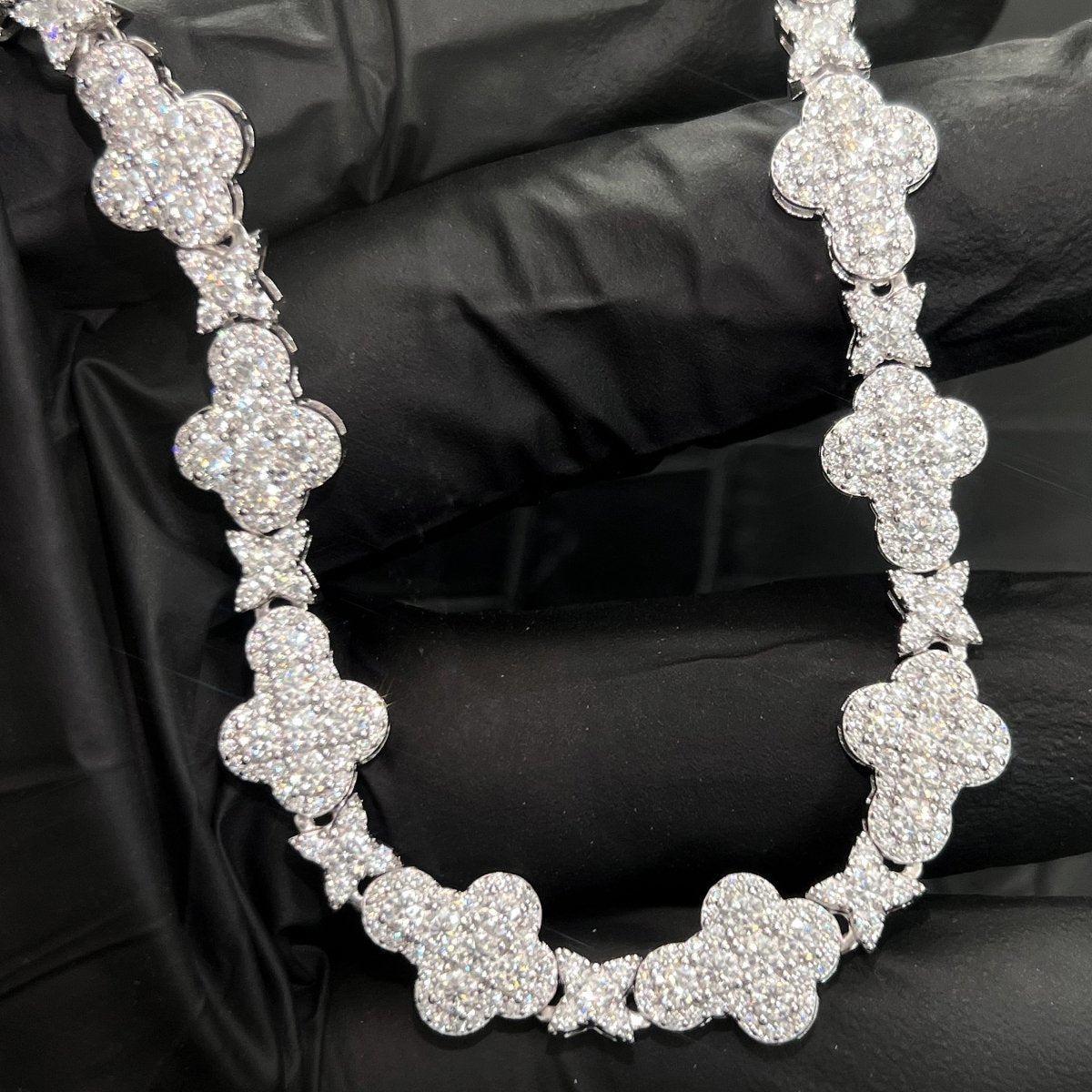 Get the look of pure luxury with this incredible cross link chain. It is hand set with over 20 carats of VVS1 clarity moissanite. Order yours today!