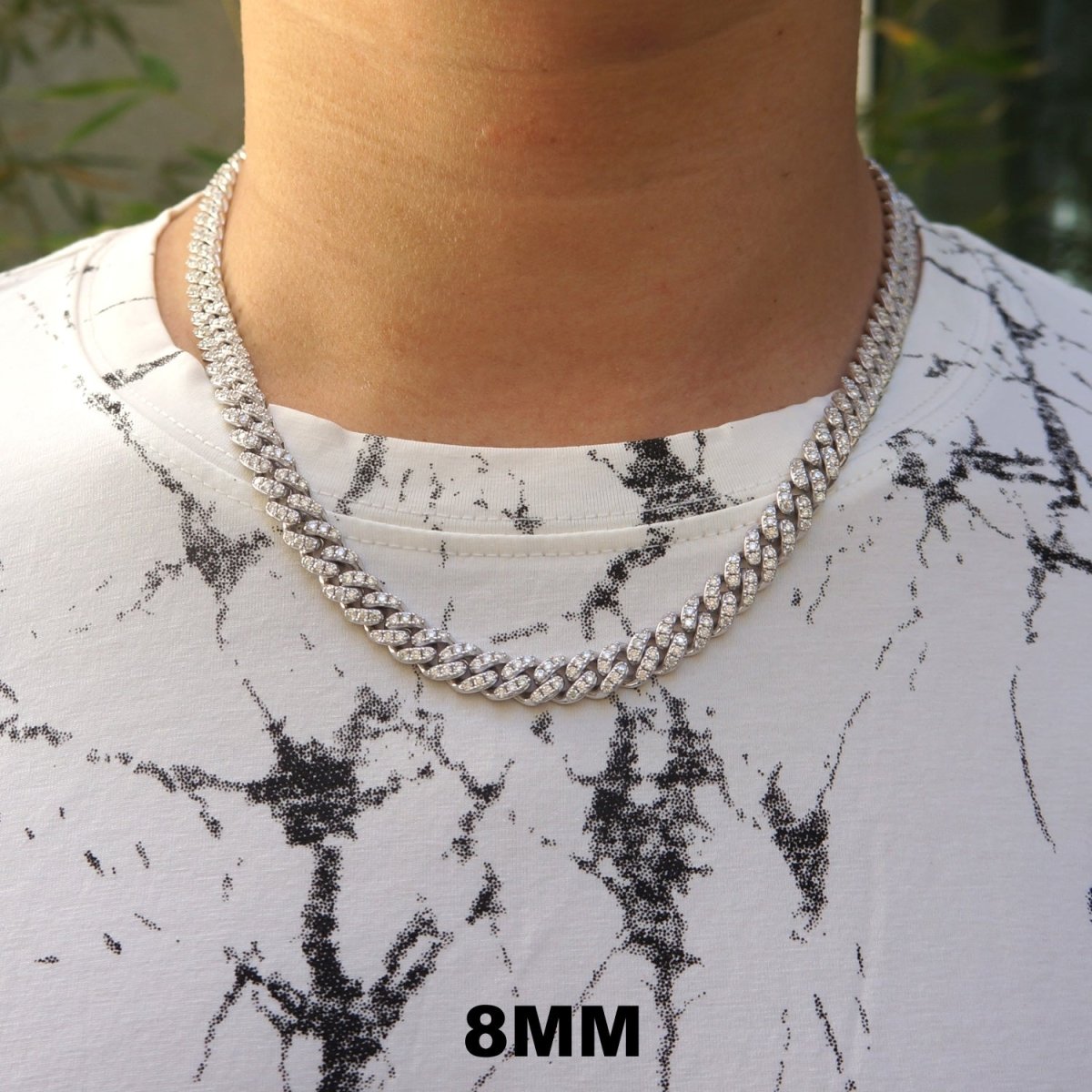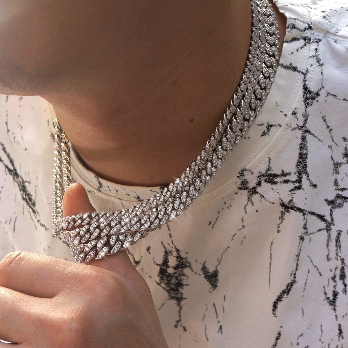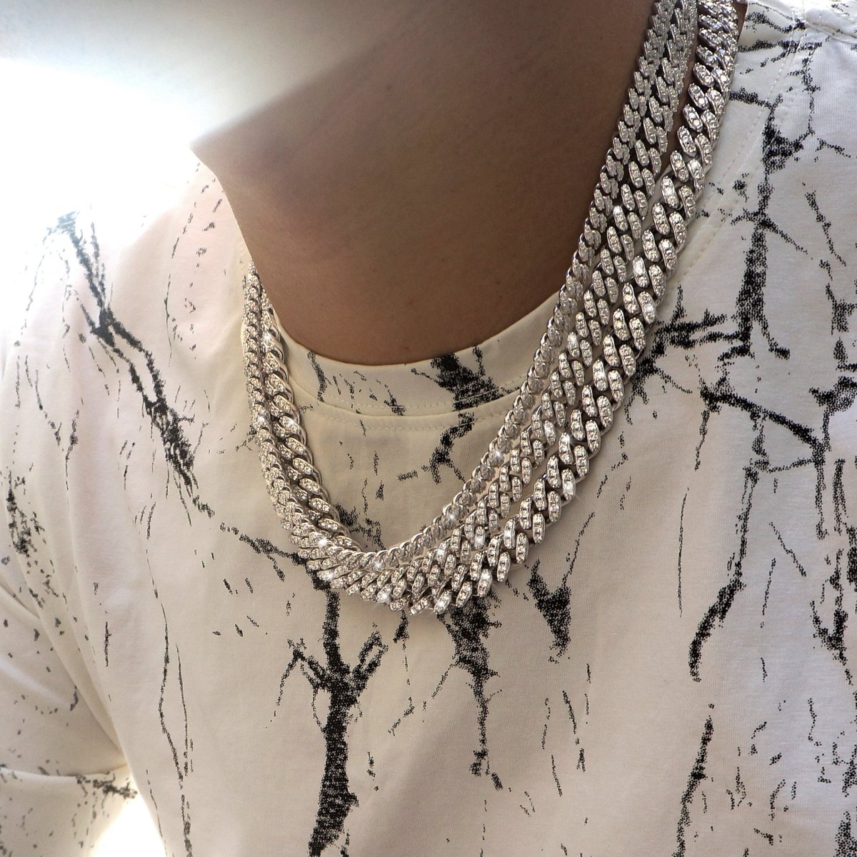 This is it. Walk into the room and it's game over. This is the highest level cuban chain you can get without spending $20,000+ on a natural diamond version. Every link on this chain is flooded with VVS1 clarity genuine moissanite stones prong set up high for the ultimate shine. Each link is fully solid, thick and heavy. This gives the chain a high end luxurious feel that most cubans lack. It looks and feels like a 5 figure chain. Order yours today and blow away the competition on sight.