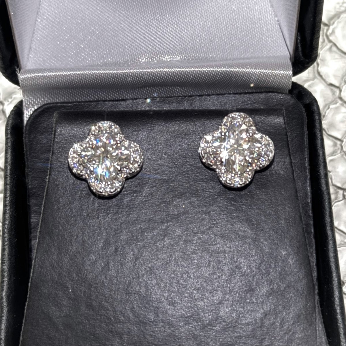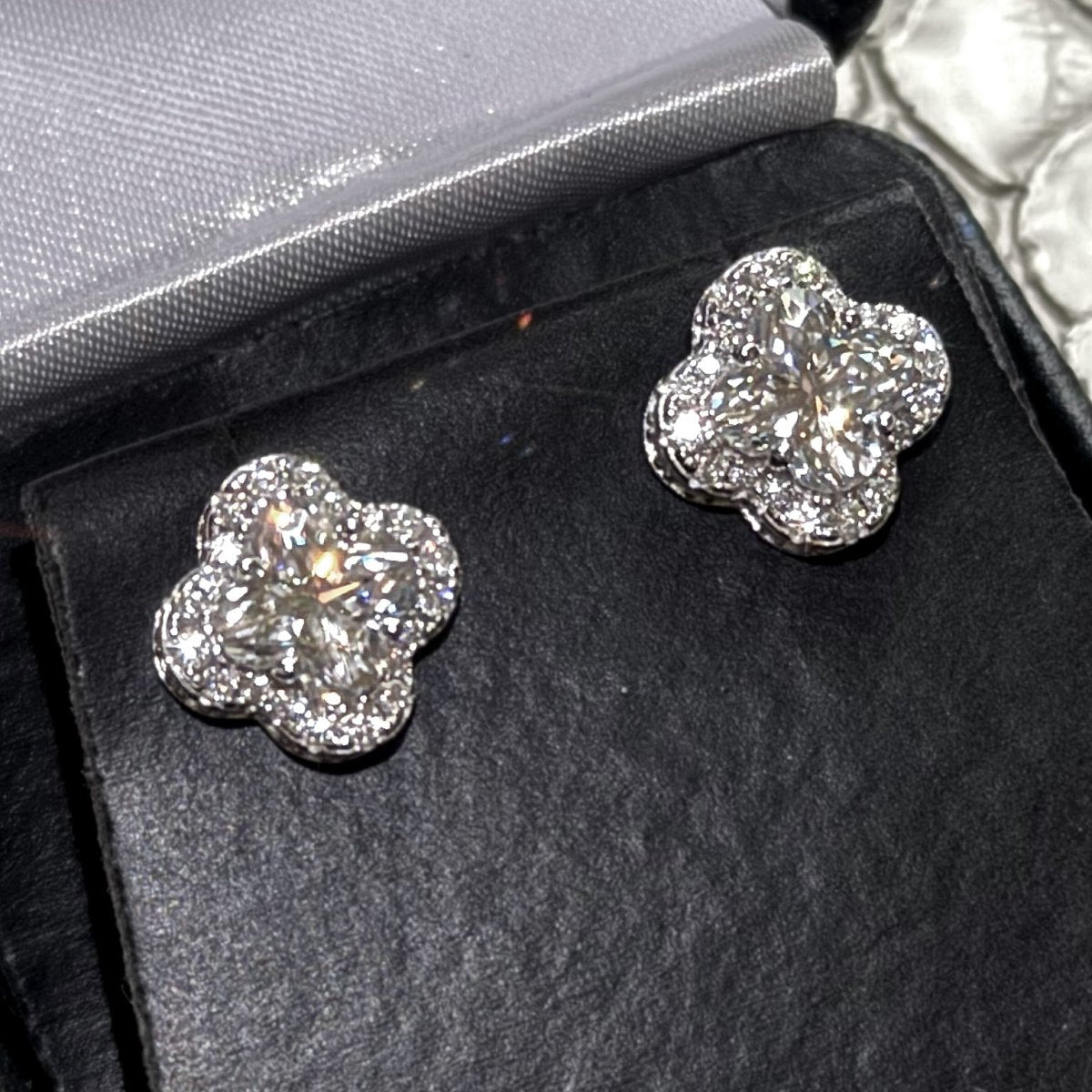 3.20 CTW Clover Cut Moissanite Halo Earrings