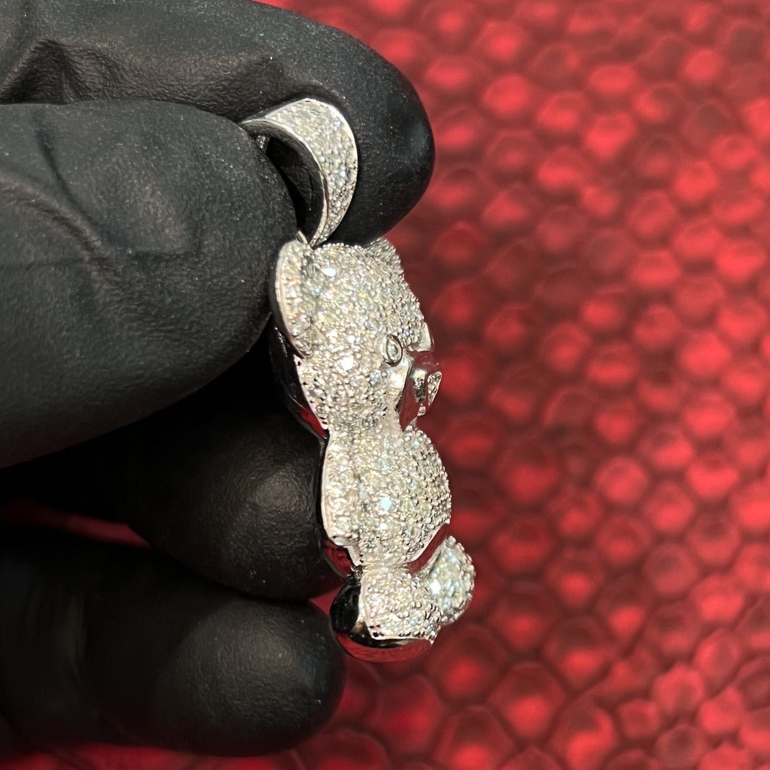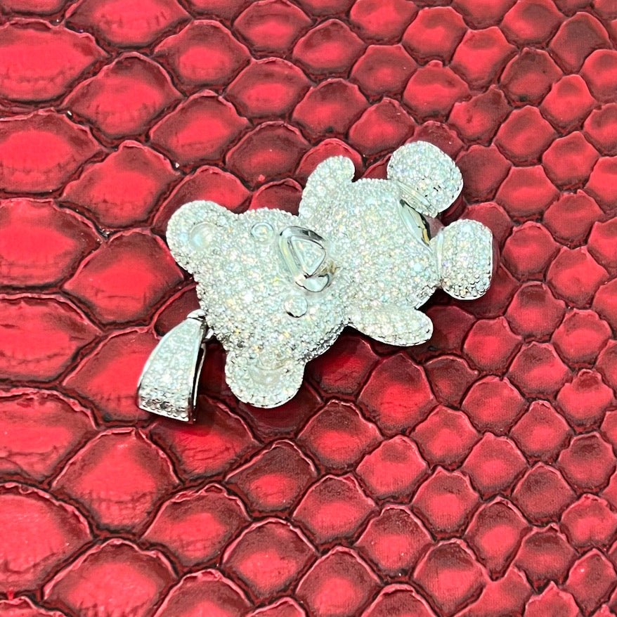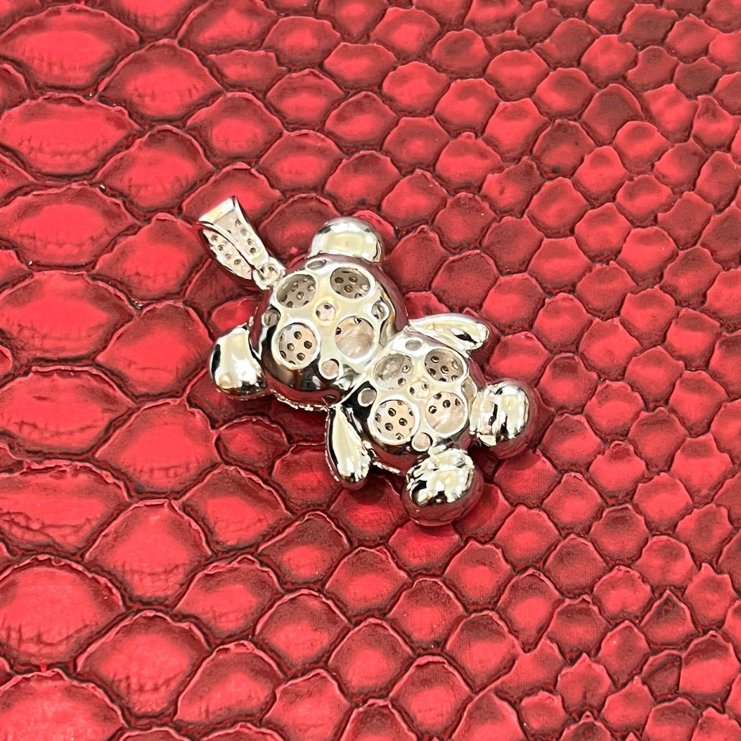 3D Sterling Silver Moissanite Teddy Bear Pendant