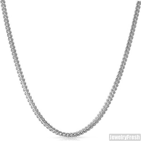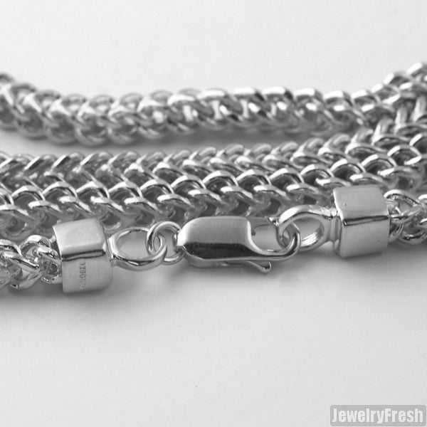 This high quality sterling silver Franco Cuban chain gives you the exact same look as a solid white gold chain at an affordable price. This is top quality Italian made with hand polished details. It is 4mm size chain which is good for mini or medium sized pendants. This chain is solid silver and will never turn colors. It is designed to last a lifetime. Order yours today.