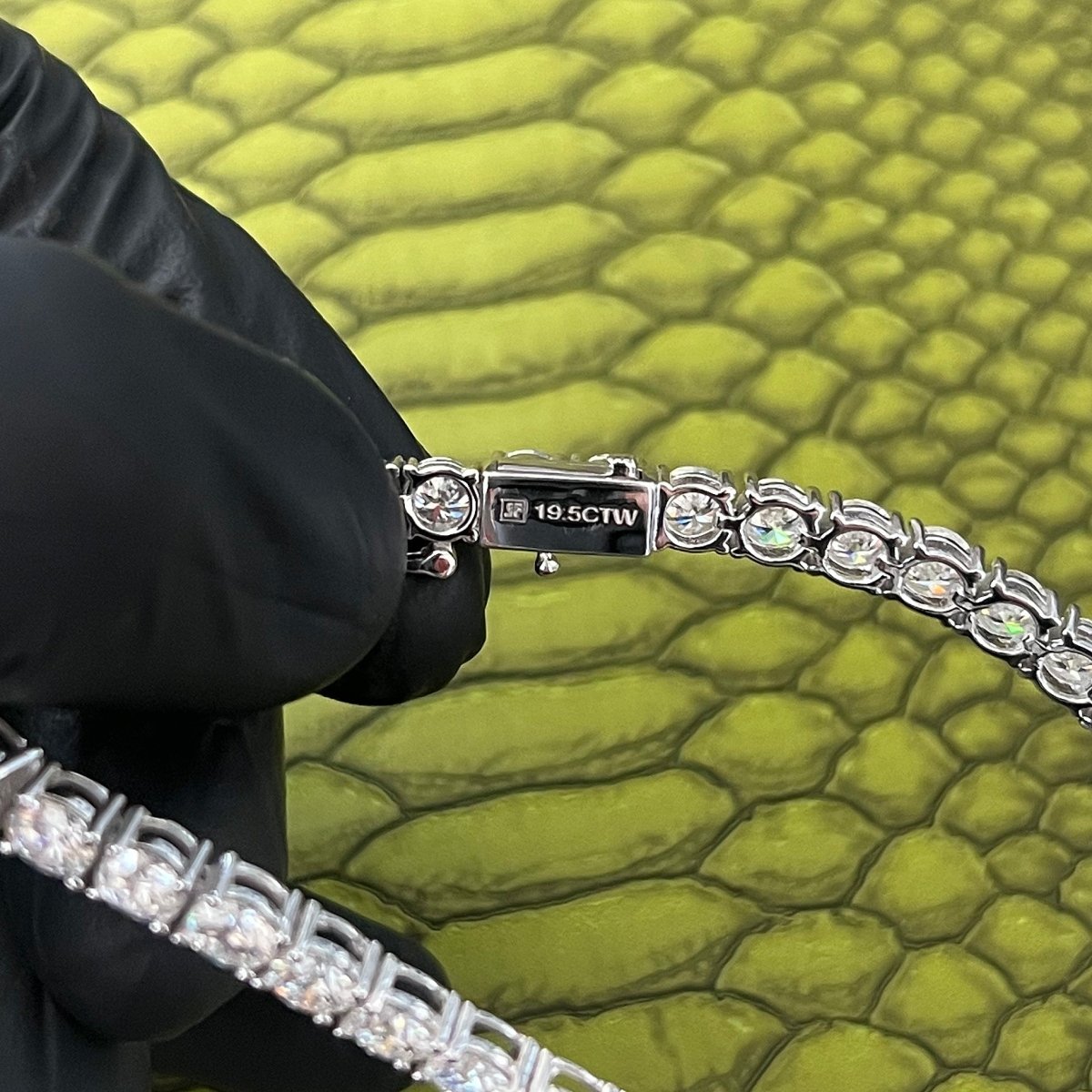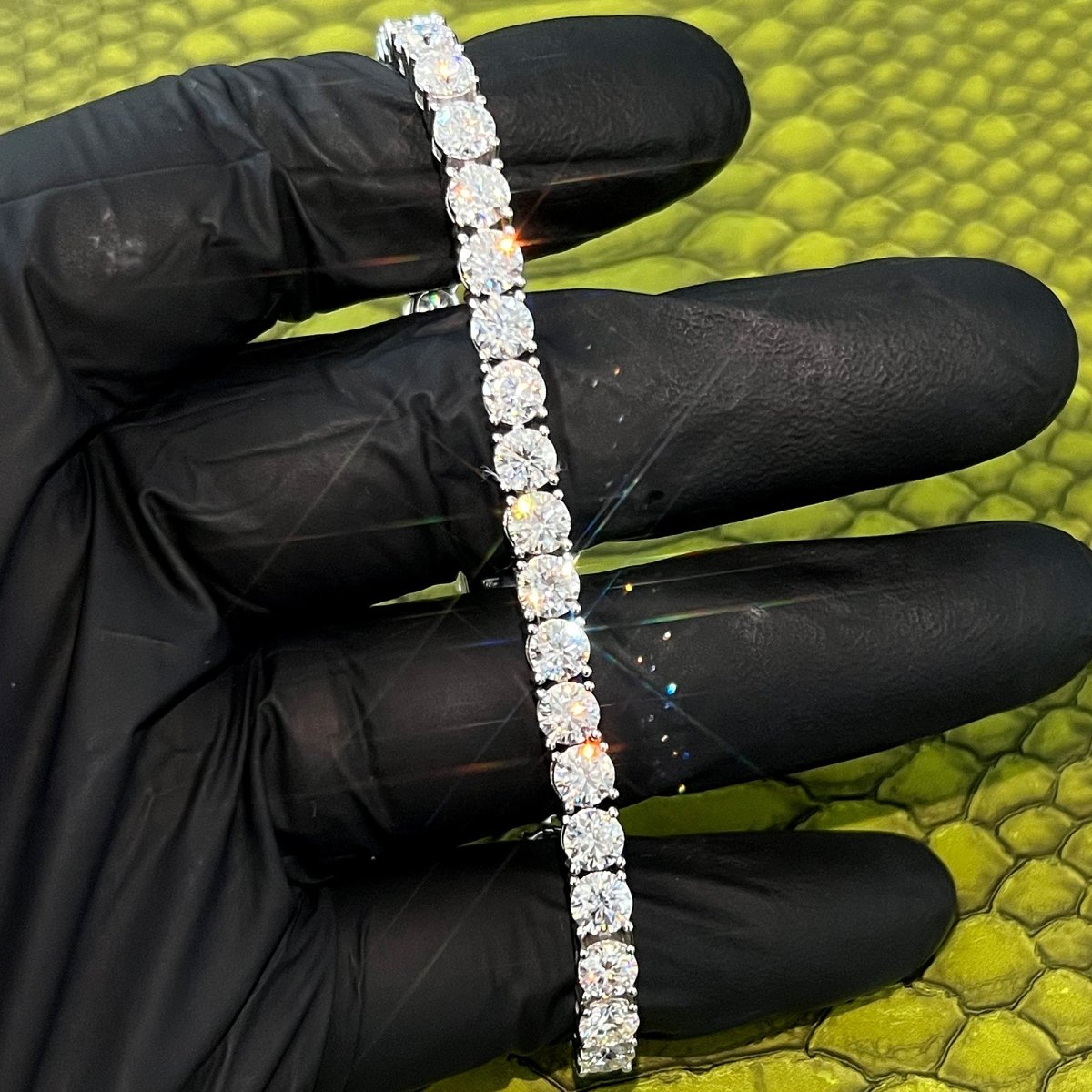 Our top quality colorless moissanite hits harder and outshines everything. They have more fire and brilliance than CZ and any other fake diamond. It has a hardness rating of 9.25 out of 10 and tests positive as a diamond on most handheld testers. Real natural diamond tennis bracelets cost anywhere from $10,000 - $15,000+ Get the exact same look with one of these bracelets!