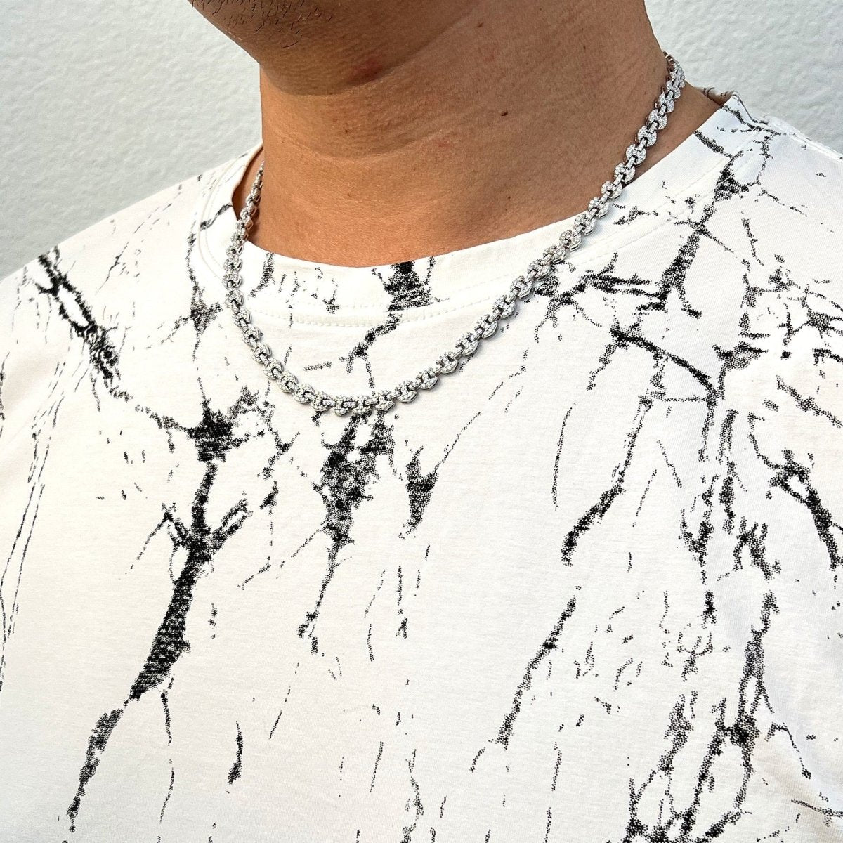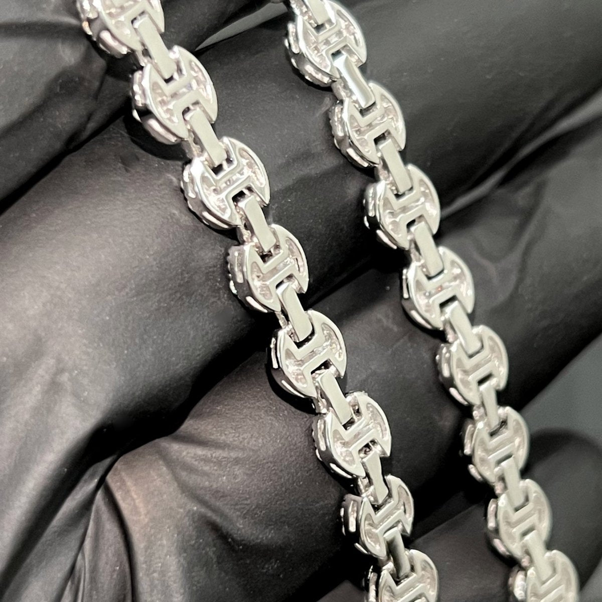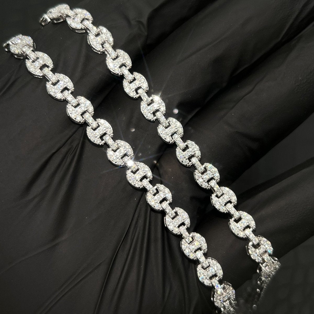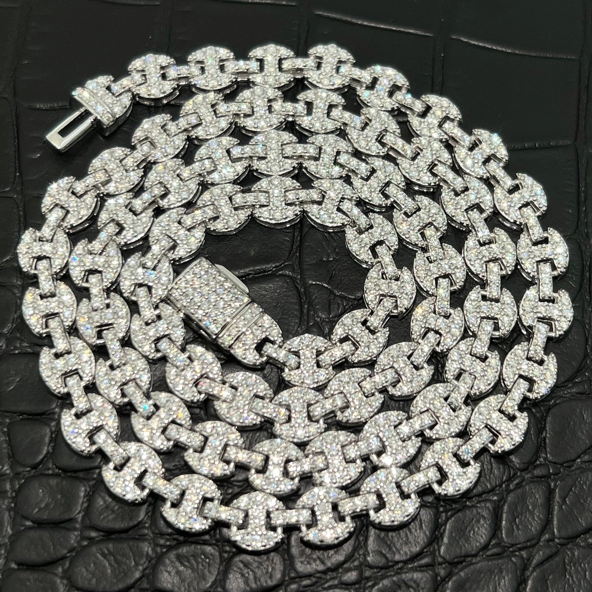 Get the look of pure luxury with this incredible gucci link chain. It is hand set with over 8 carats of VVS1 clarity moissanite. Order yours today!