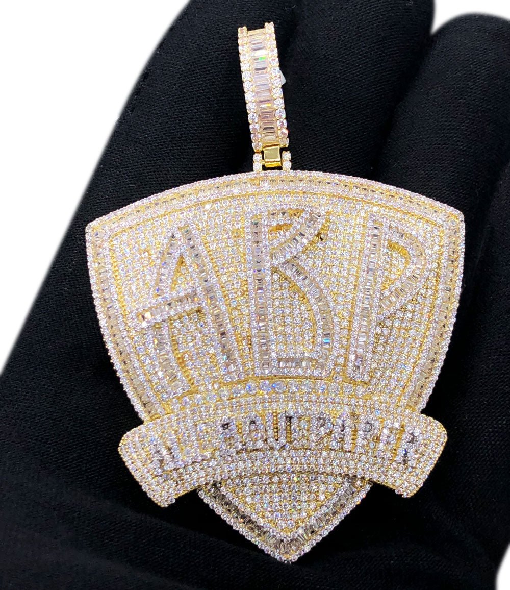 This high quality pendant is flooded with the high quality simulated diamonds for the ultimate shine. Everything is hand made with prong setting on thick base metal. Get the same look as expensive diamond jewelry at an affordable price. Order today!