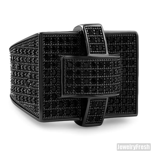 All Black Cross Style 360 CZ Micropave Mens Ring