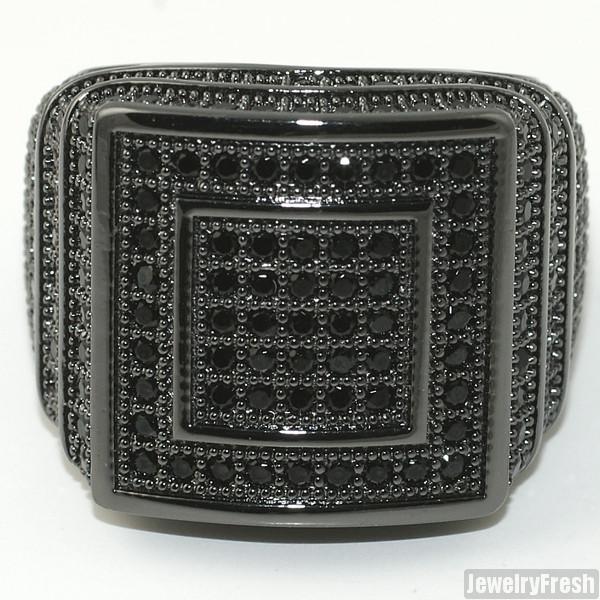 All Black Hip Hop 360 Micropave CZ Square Ring