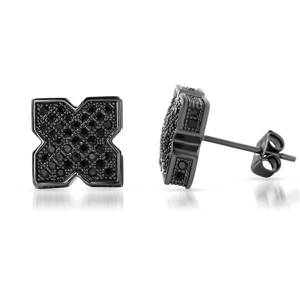 Black Cubic Zirconia X Shape Iced Out Earrings