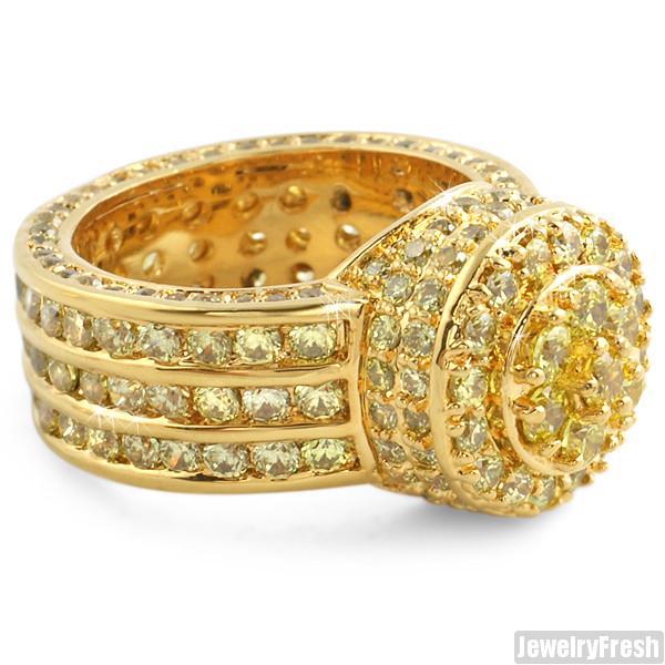 Canary Lemonade Gold CZ Blizzard Mens Ring