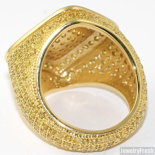 This ring is made out of solid brass and features thick plating with clear coat. All stones are micropave prong set by hand. All stones have breathing holes for maximum shine. Order yours today!