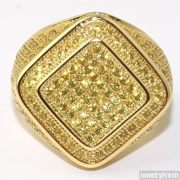 Diamond Shape Micropave 360 CZ Mens Ring Canary