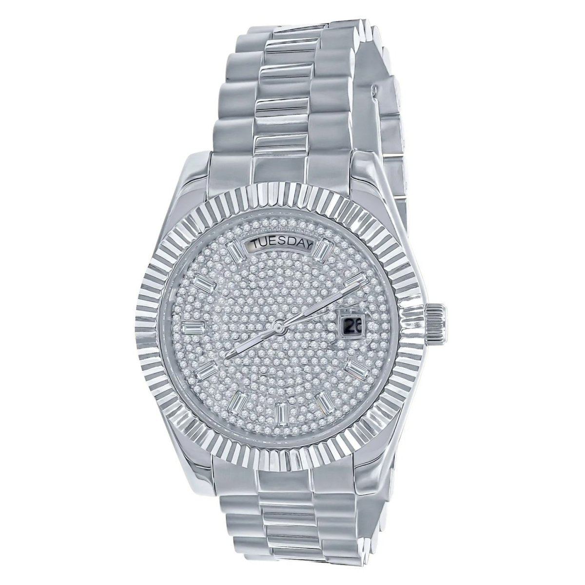 Executive Luxury Watch With Pave Dial Baguette Hours