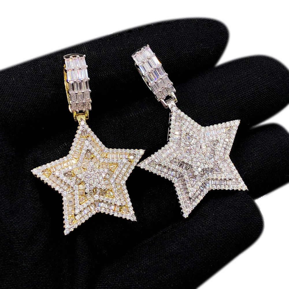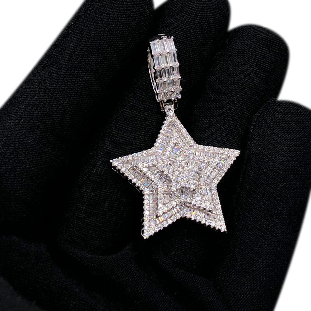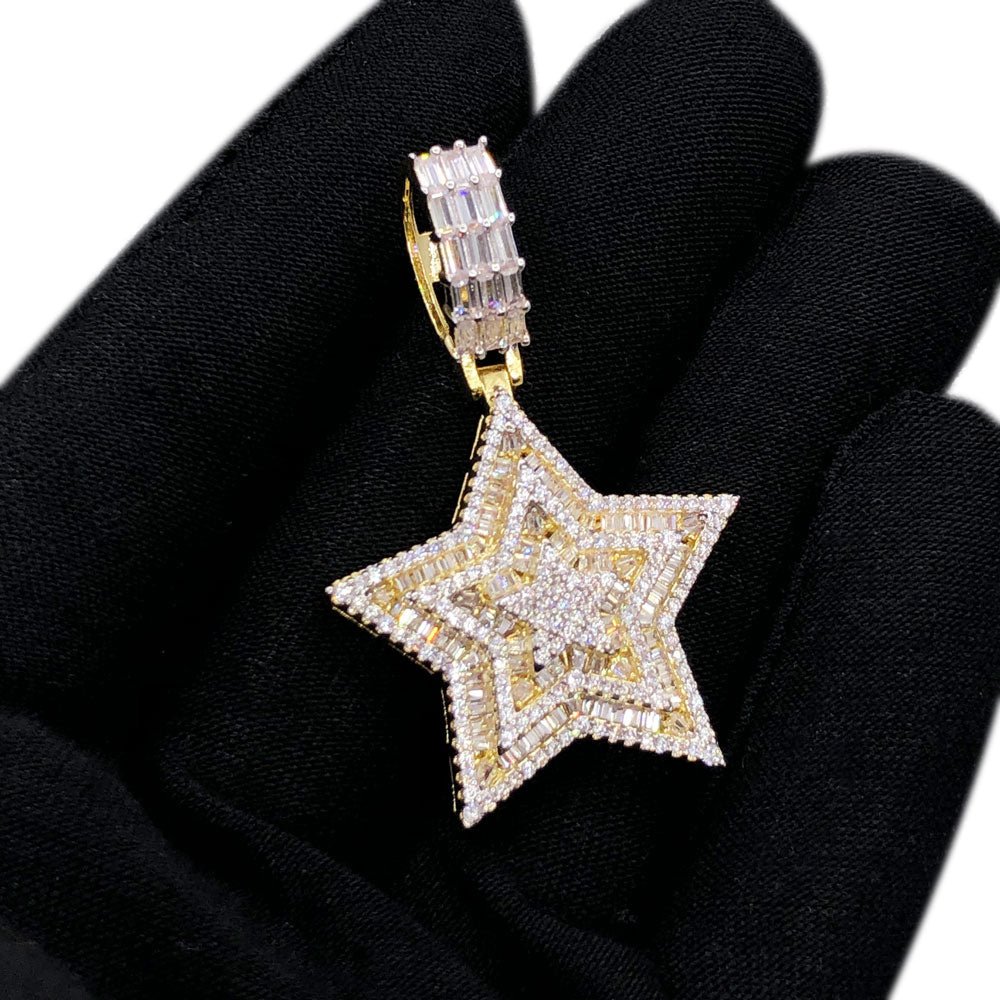 Flawless Baguette Iced Out Star Pendant