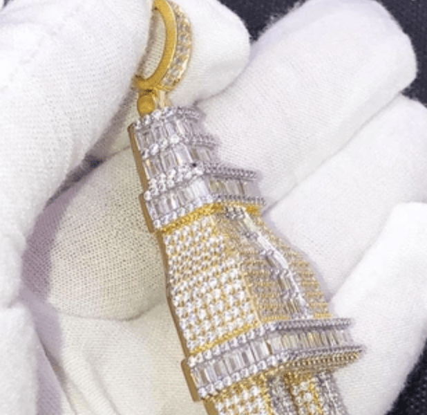 This high quality pendant is flooded with the high quality simulated diamonds for the ultimate shine. Everything is hand made with prong setting on thick base metal. Get the same look as expensive diamond jewelry at an affordable price. Order today!