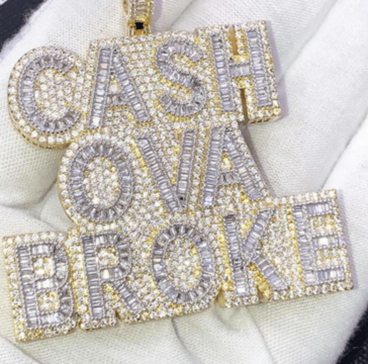 Gold Cash Ova Broke Flawless Baguette Charm