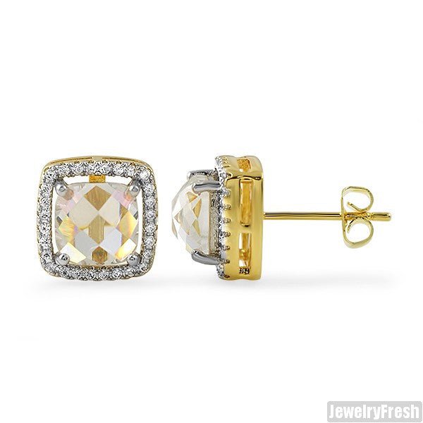 Gold Rose Cut Halo CZ Stud Earrings