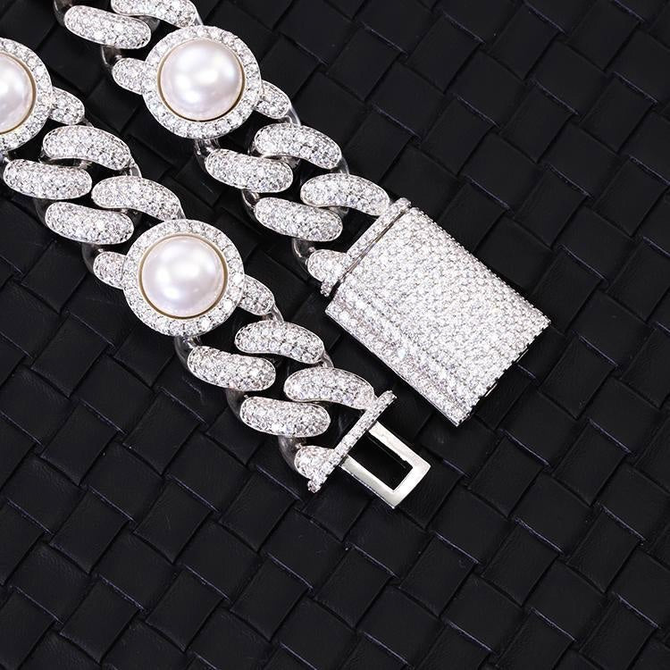 Royalty Pearl VVS1 Moissanite 925 Silver Cuban Chain
