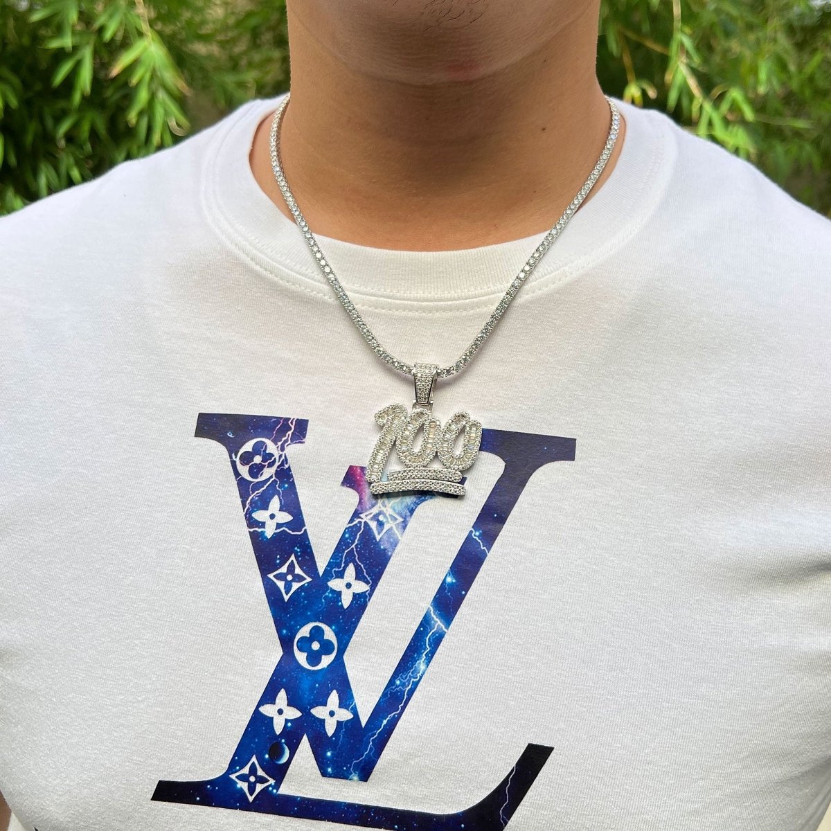 This amazing 100 emoji pendant is made out of sterling silver with hand set stones throughout for a glistening shine. Our VVS1 clarity genuine Moissanite stones shine harder than CZ and any other gemstone in existence. They have a hardness rating of 9.25 out of 10, meaning they will not dull easily over time like other cheap fake stones. These carbon based stones are known to pass commonly used diamond testers. Get the exact look and shine of expensive natural diamonds at a much better price. Order yours today!