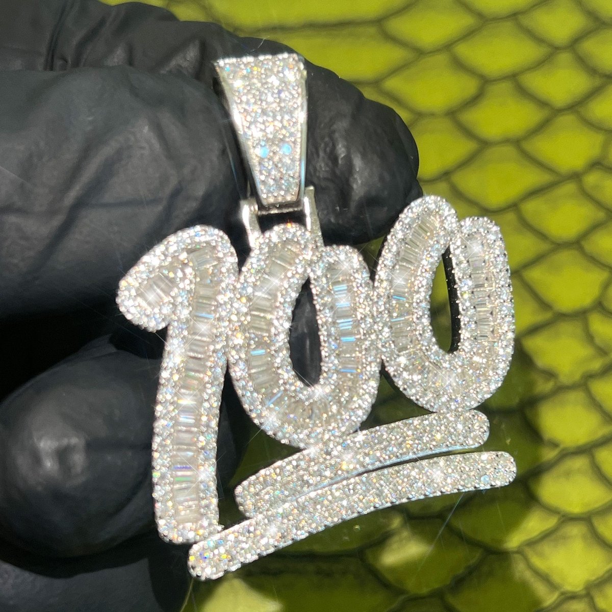 Large 100 Emoji 5.27 Carat VVS Moissanite Pendant