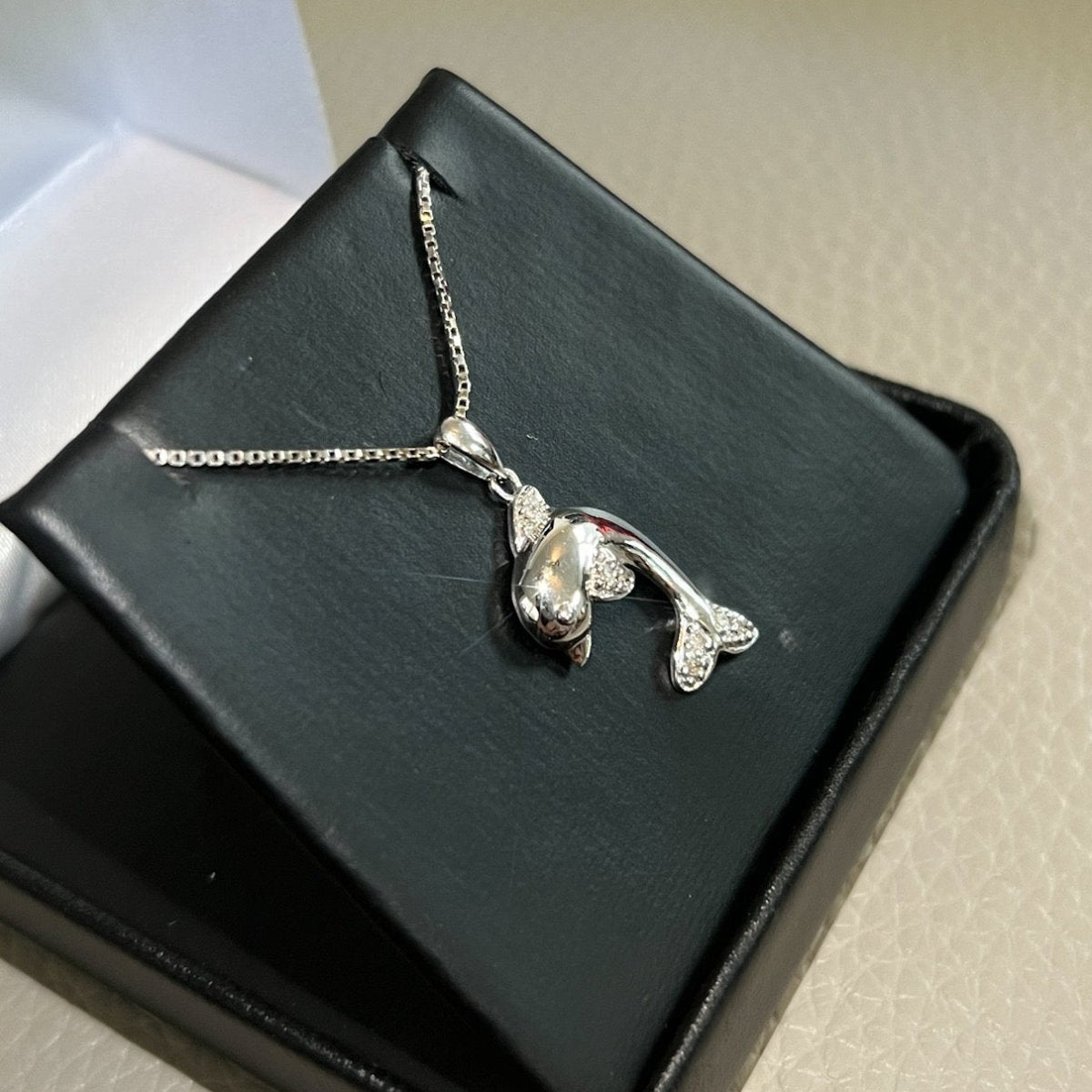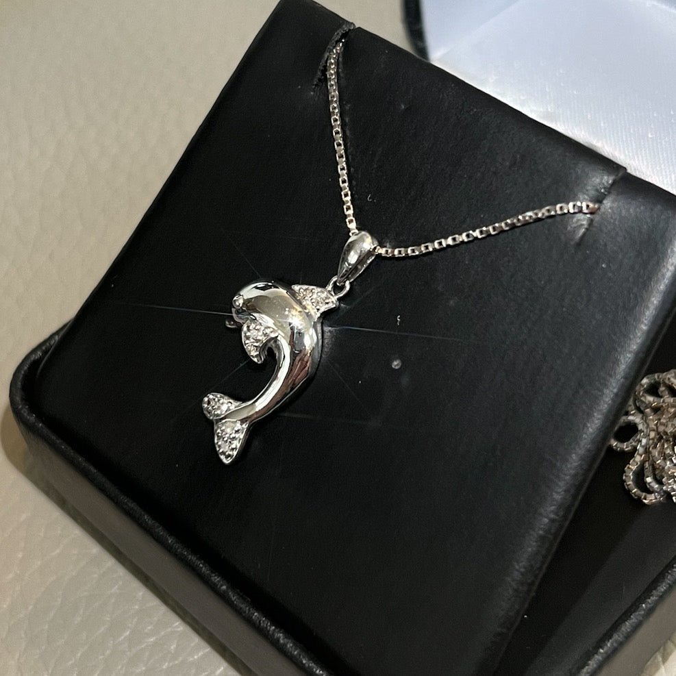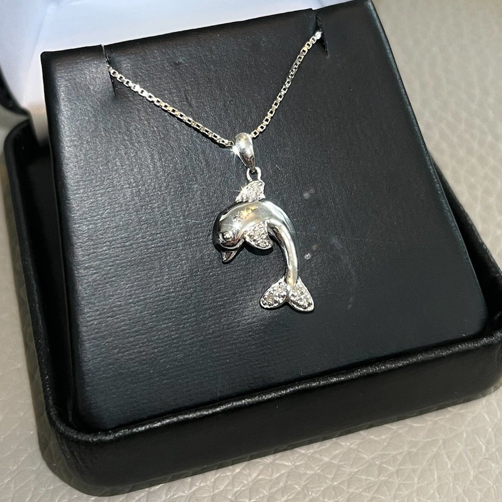 Silver 0.05 Carat Diamond Dolphin Necklace