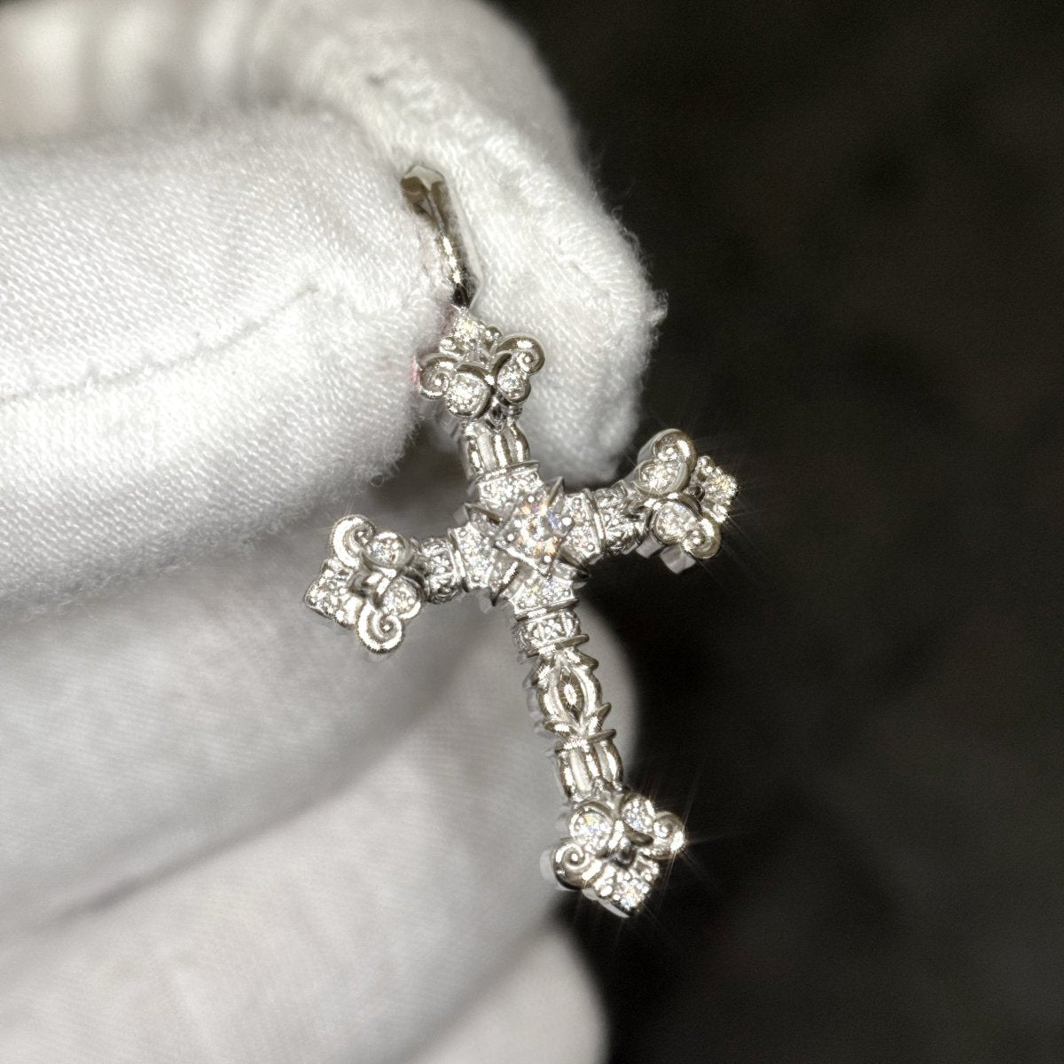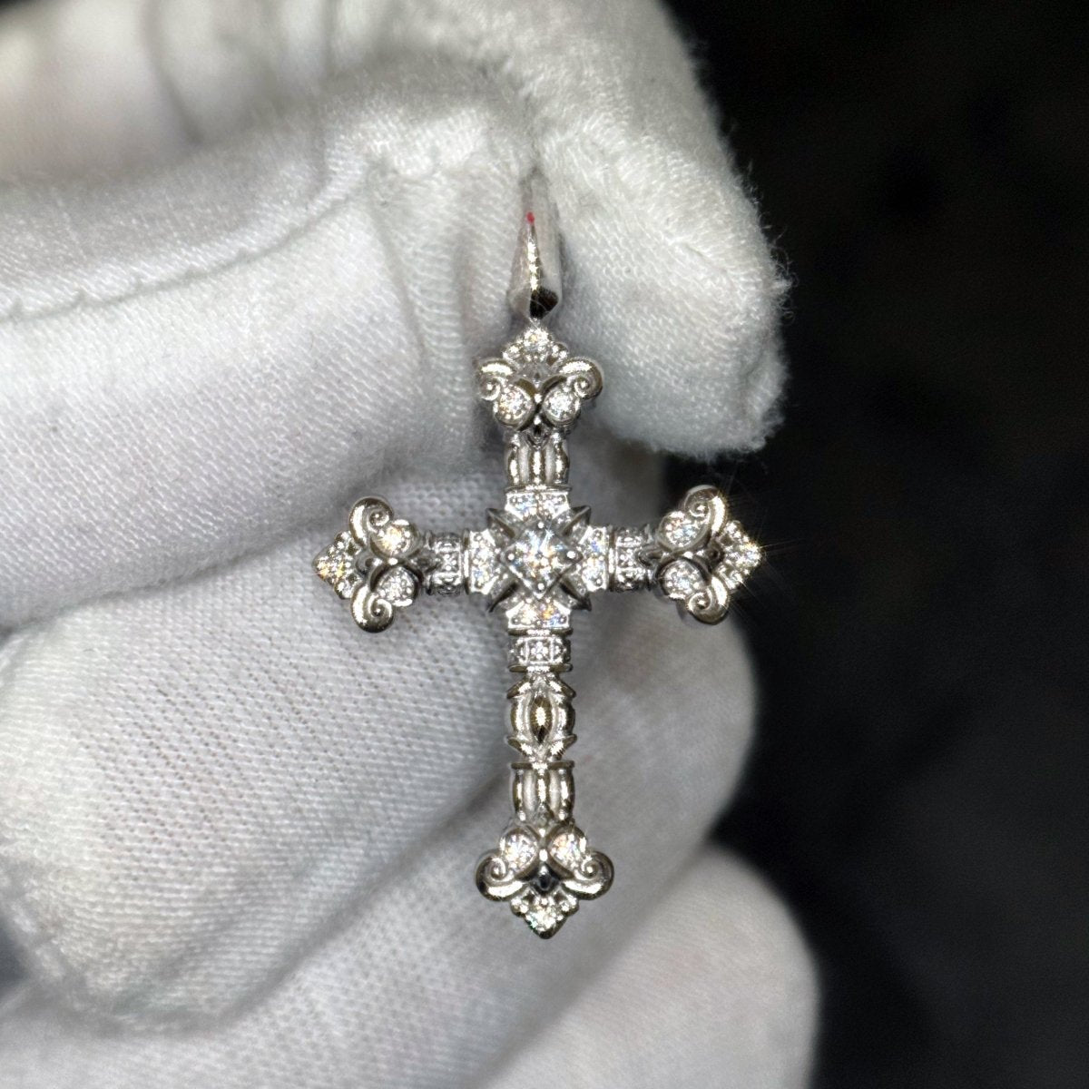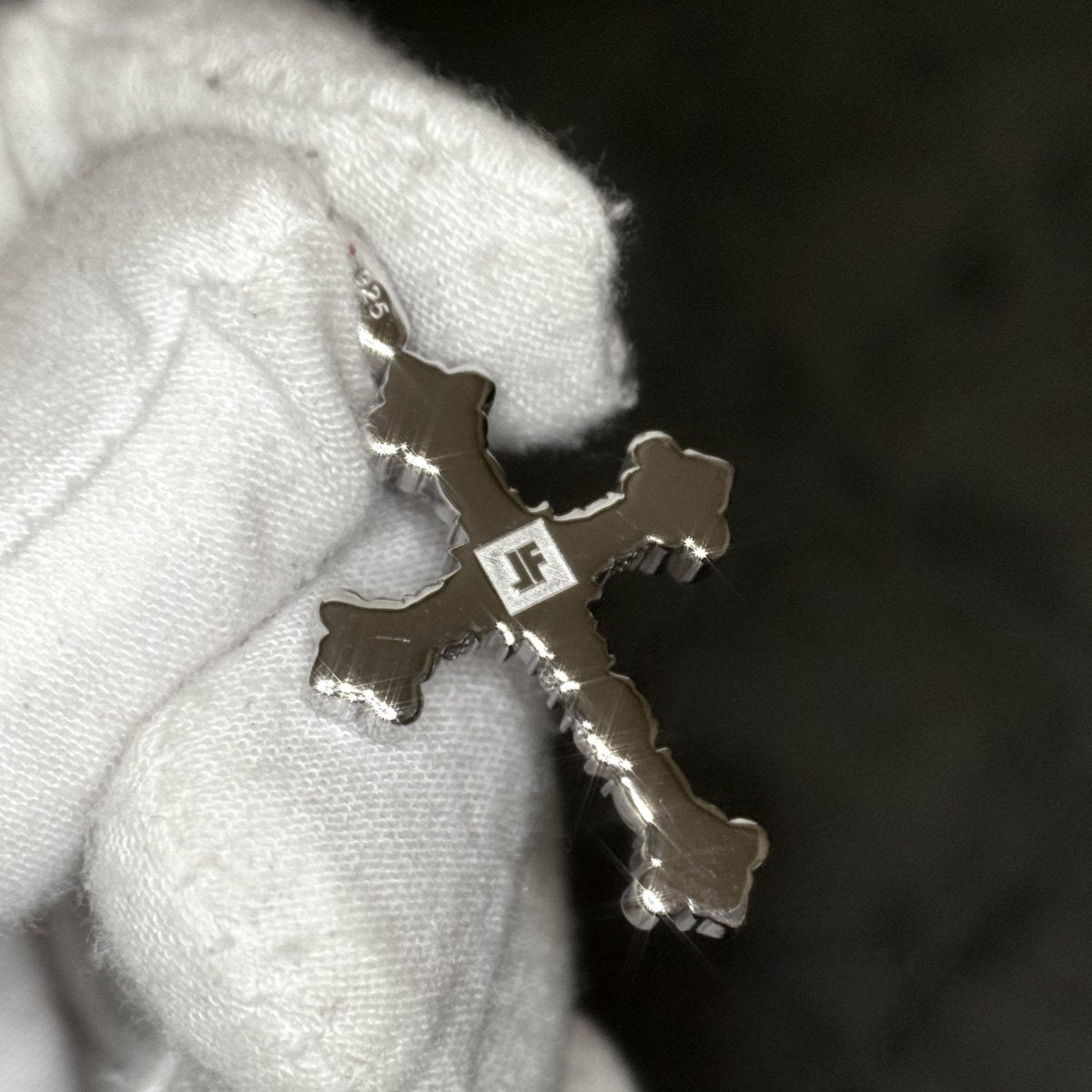 This small sized cross is packed with stunning detail and shine. This genuine sterling silver cross features fluted raised edges, hand finishing and prong set stones to set it off. Includes our 3mm 20 inch stainless steel cuban chain.