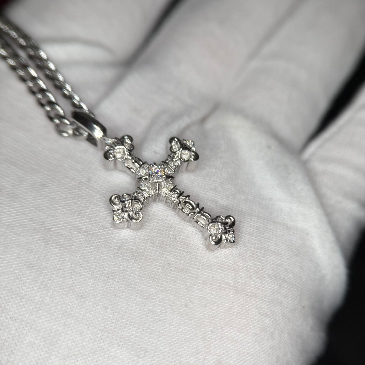 Sterling Silver Moissanite Medieval Cross Cuban Chain Set