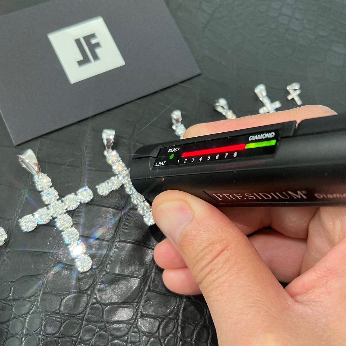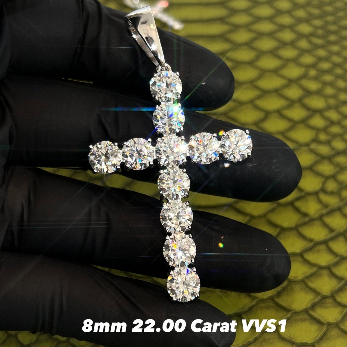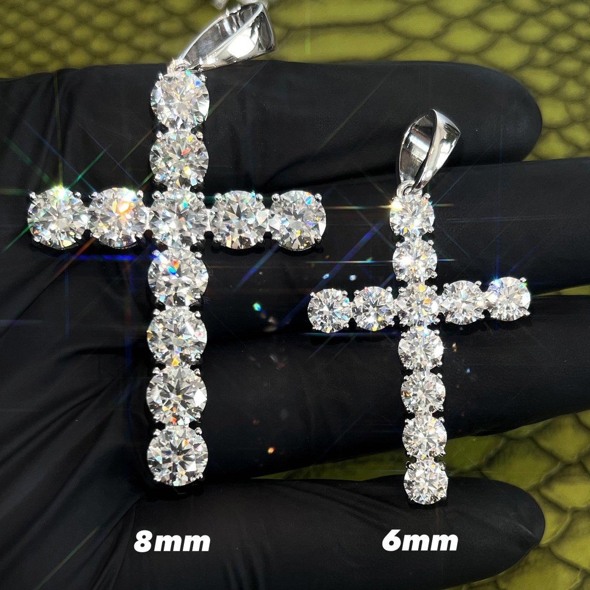 These are the top selling crosses of all time. These never go out of style and they hit HARD. You will be spotted from the other side of the room so get ready for compliments. Choose from any stone size from a tiny baby cross to a massive 8mm version with 22 carats! Order yours today.