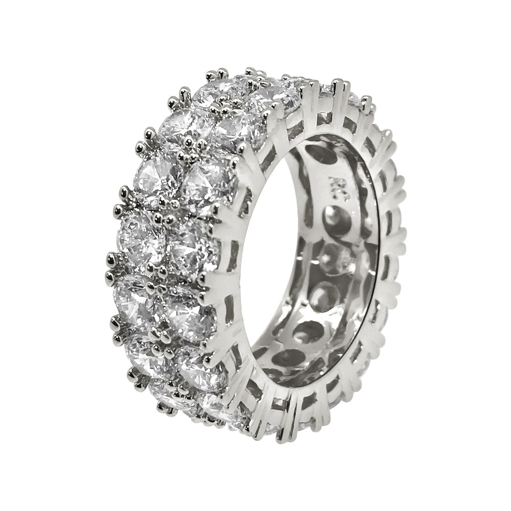 This icy eternity band will give you the look of success. Get the stacked ring look with 2 rows of quarter carat stones. Everything is hand set and we only use the finest lab created simulated diamonds. Every bit of this ring looks like a real diamond ring that cost thousands of dollars. Take your jewelry game to the next level. Order yours today!