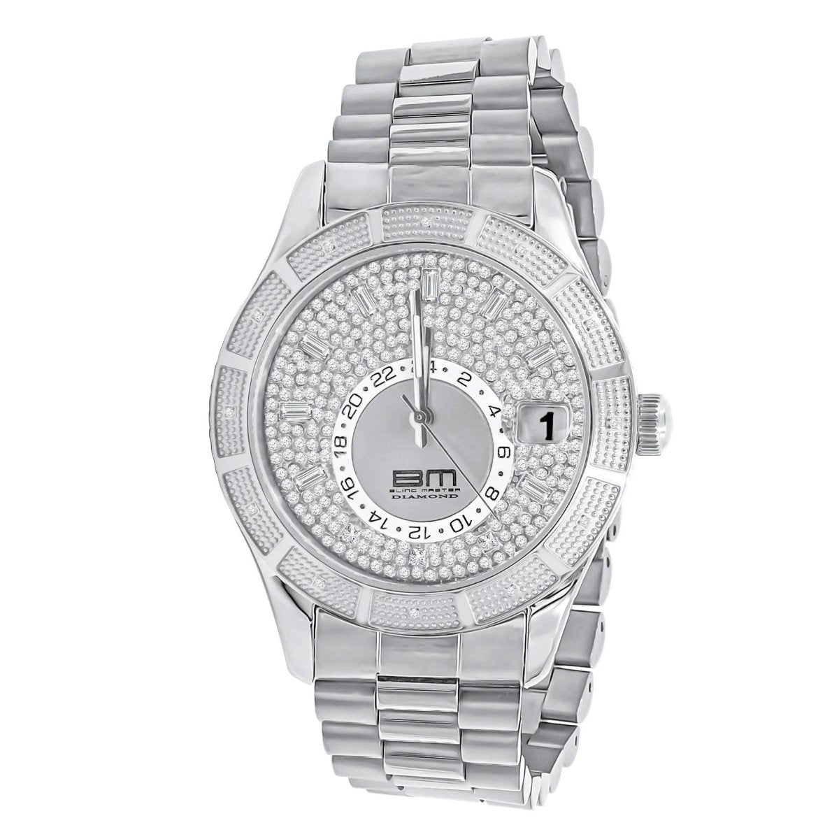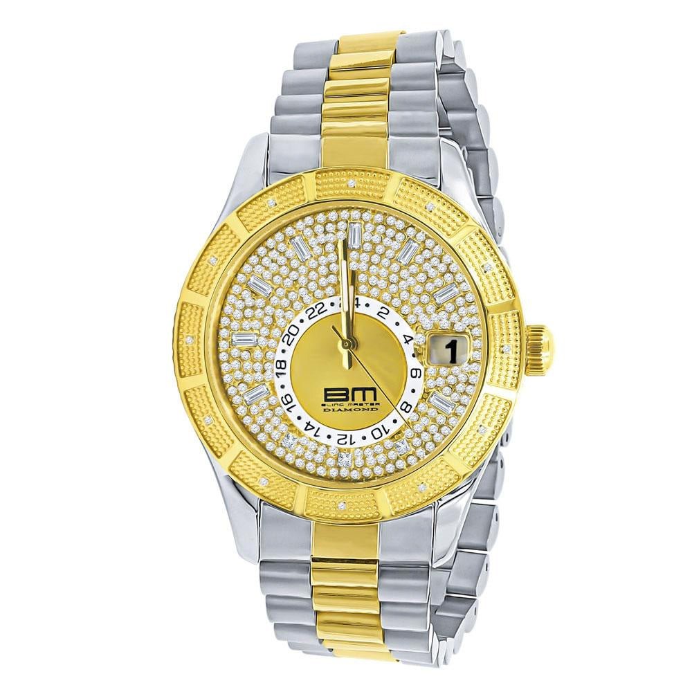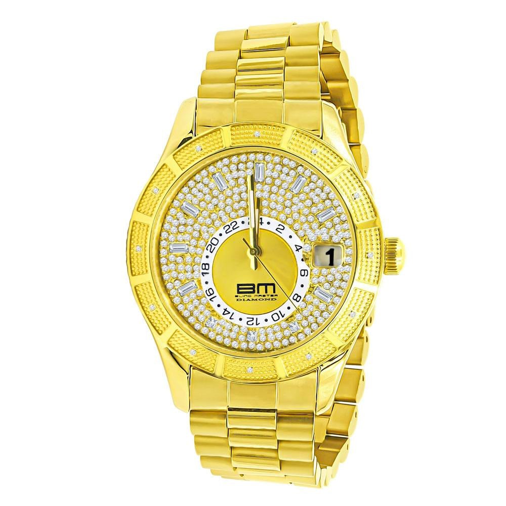 Step out in style with this head turning luxury watch. This watch has a flooded out inner dial with CZ round and baguette hour markers. The bezel is set with 12 small 100% genuine diamonds that'll pass all diamond testers. This watch is built like an expensive diamond watch with every stone prong set. Get an expensive look with REAL diamonds on the low. Get yours today!