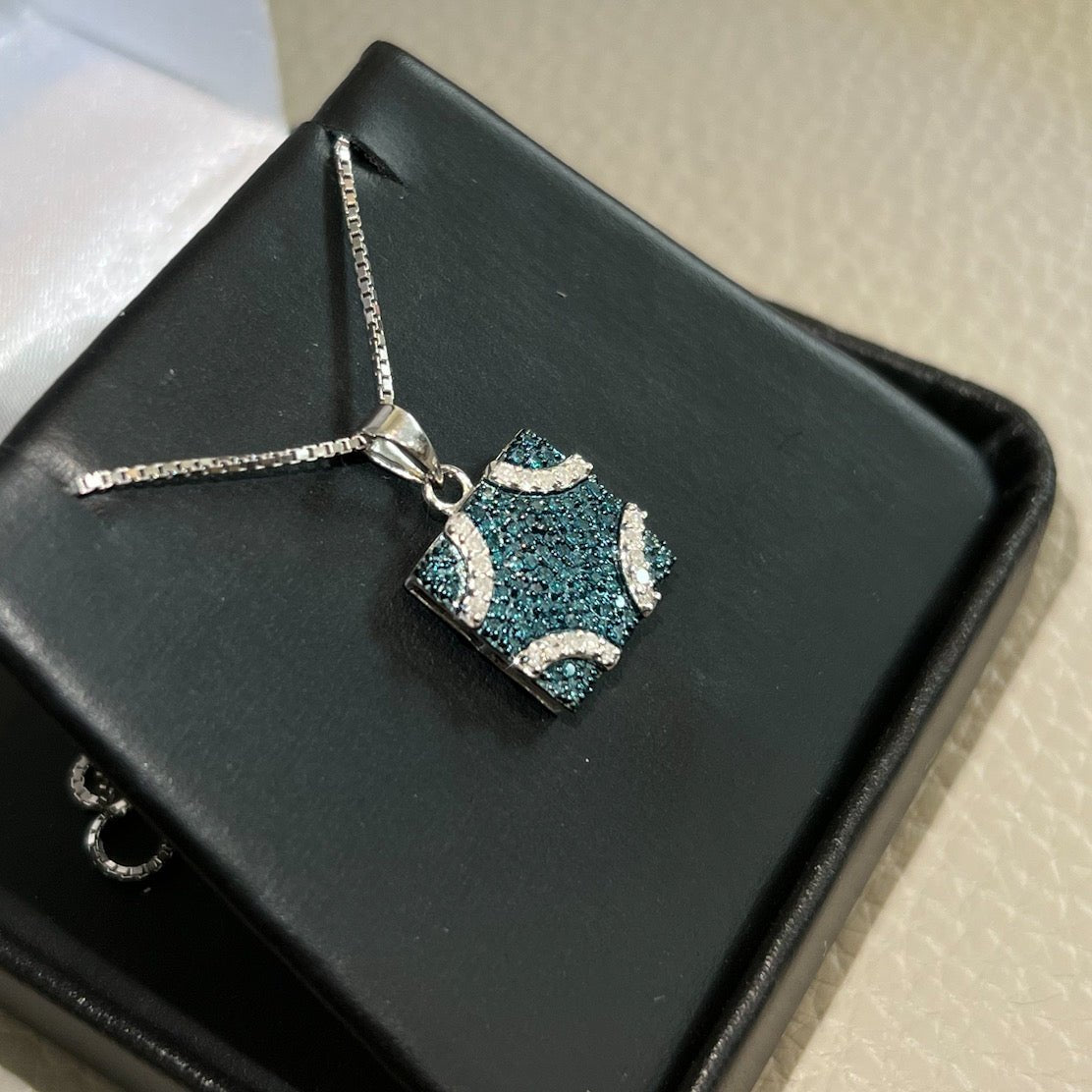 0.35 Carat Blue Diamond Womens Necklace Set