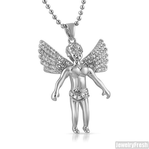 0.88 Carat Silver Angel Pendant With Chain
