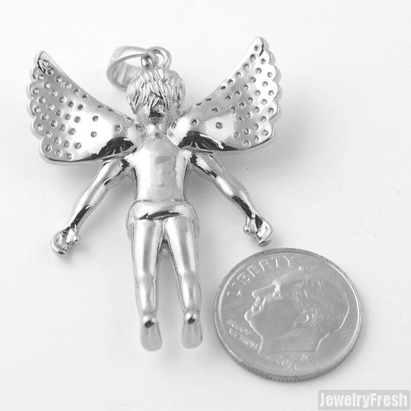 This angel pendant features incredible details and precision hand set lab diamonds. This high quality pendant is made out of brass with a rhodium/silver finish. It looks and feels like a real diamond pendant at a much lower price. It comes with a bonus 36 inch stainless steel bead chain. You can cut it down to any length you want once you receive it. Order yours today!