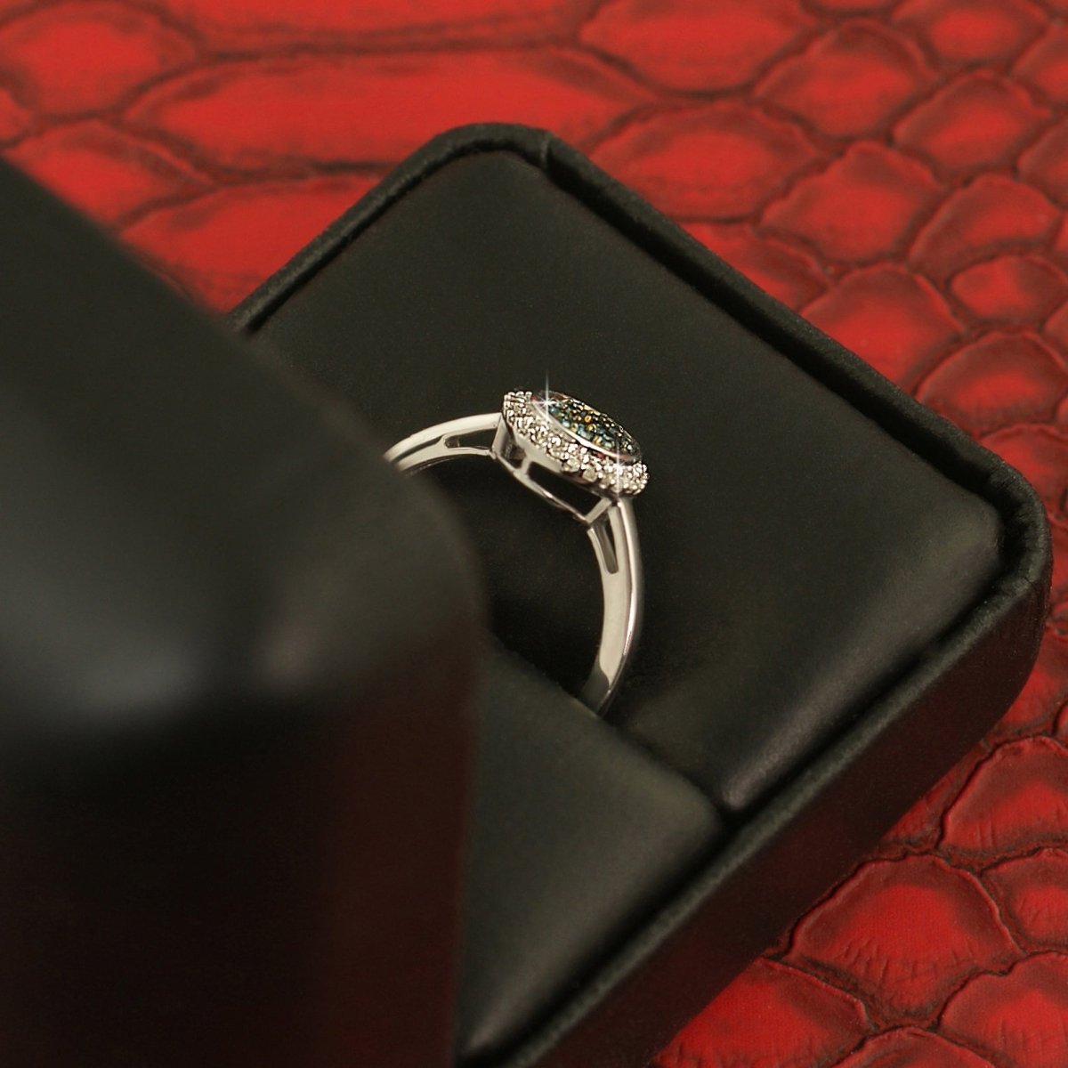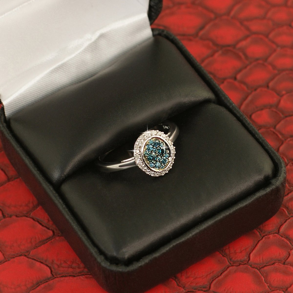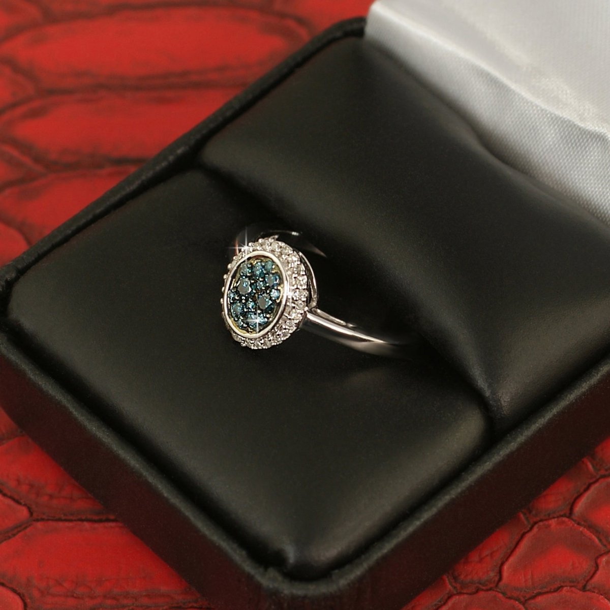 10K White Gold 0.40 CTW Oval Blue Diamonds Ring