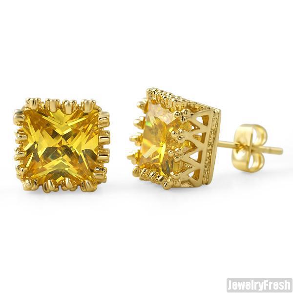 10mm Canary Princess Cut Crown Set Stud Earrings