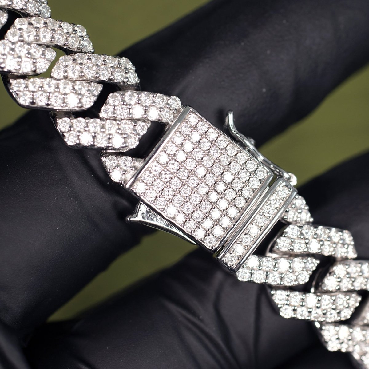 Take your wrist game to the next level with this crushed out bracelet flooded with VVS1 clarity moissanite. Not CZ, not simulates. These high quality moissanite links have the true expensive diamond look that sets you apart from the crowd. Outshine everyone!