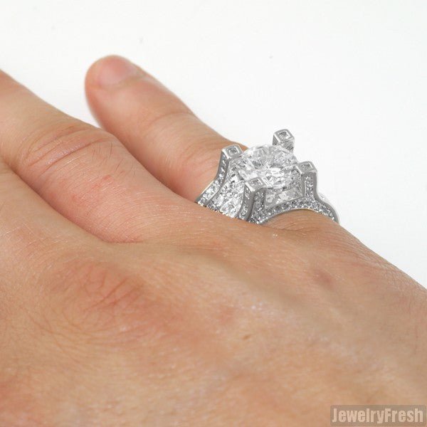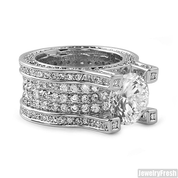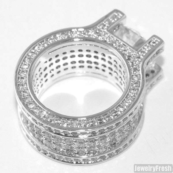 This ring is made out of real sterling silver and can be worn daily. All stones are lab made VVS Flawless simulated diamonds. Each stone is micropave prong set by hand by experienced master jewelers. The ring has a caged back with breathing holes for maximum shine. Order yours today!