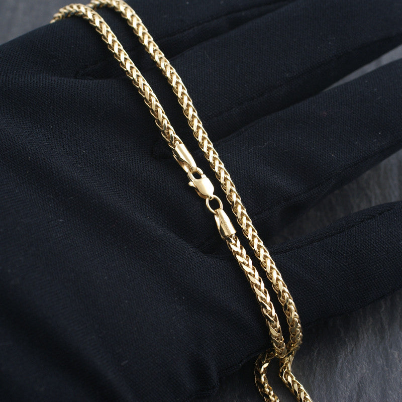 3mm Shiny Diamond Cut 10K Gold Wheat Chain