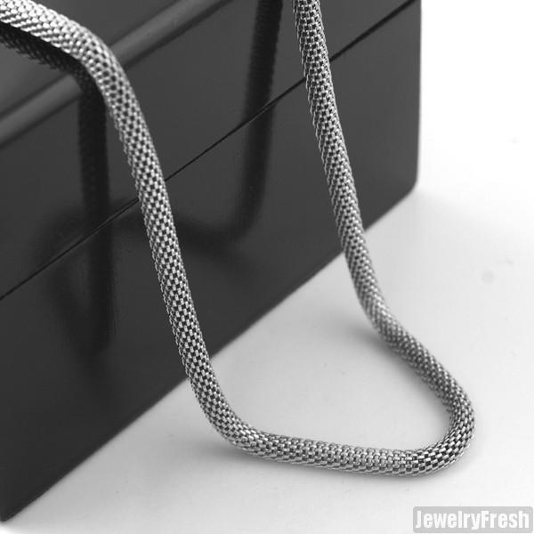 This high quality popcorn snake chain has a unique hollow look. Matching bracelet is available. It is made out of solid 316L stainless steel and polished to perfection by our expert jewelry production team. This chain will never fade or tarnish. It looks and feels like real platinum.